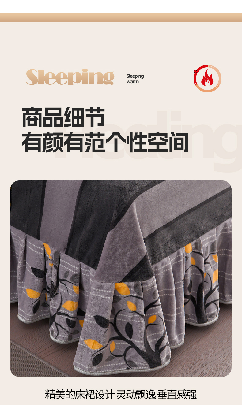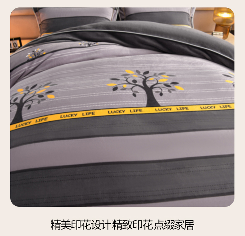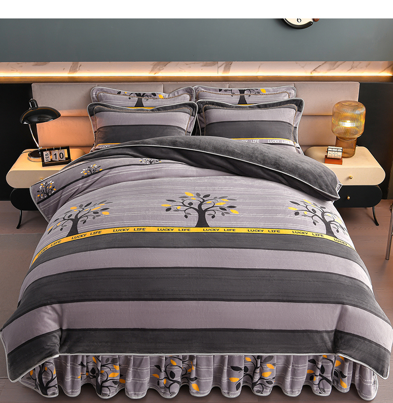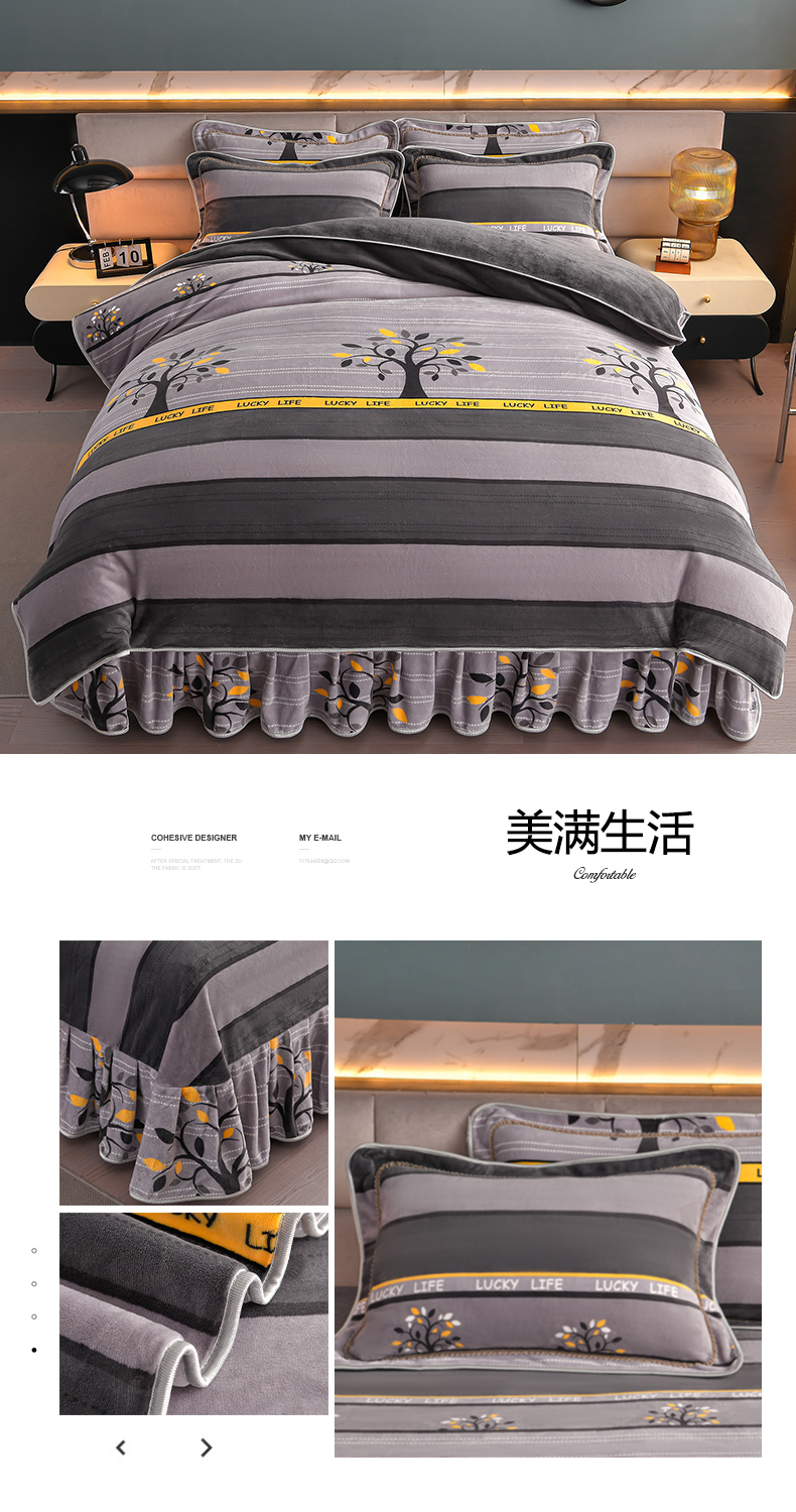 商品名称:董成龙家纺 20256新款高克重9-10斤加厚印花超柔牛奶绒爆款法莱绒金貂绒床裙四件套控价 美满生活