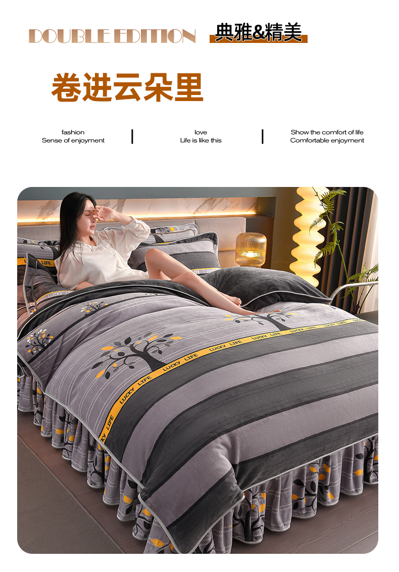 (总)董成龙家纺 2026新款高克重9-10斤加厚印花超柔牛奶绒爆款法莱绒金貂绒床裙四件套控价,富贵吉祥,称心如意,爱意满满,繁花,嫣然一笑,金色年华,春华秋实,吉祥如意,林间鹿语,快乐时光,钟爱一生,欢乐猫,金玉满堂,金枝玉叶,休闲时光,摇钱树,格调,一鹿有你,美满生活,黄金叶,蝶梦,萌萌兔,英伦风尚,花韵,银杏花开,温婉佳人,幸运绒趣,恐龙乐园,蝶舞