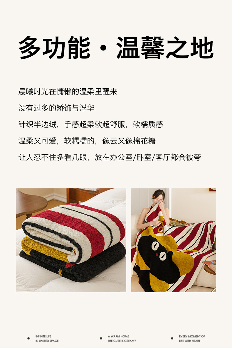 (总)瑞米家居 2026新款多功能半边绒盖毯毛毯毯子,呆萌星猫,朵朵绒,惊喜,空白格,奶huhu,暖fufu,慵懒猫-红,慵懒喵-黄,组合图仅供参考不可下单