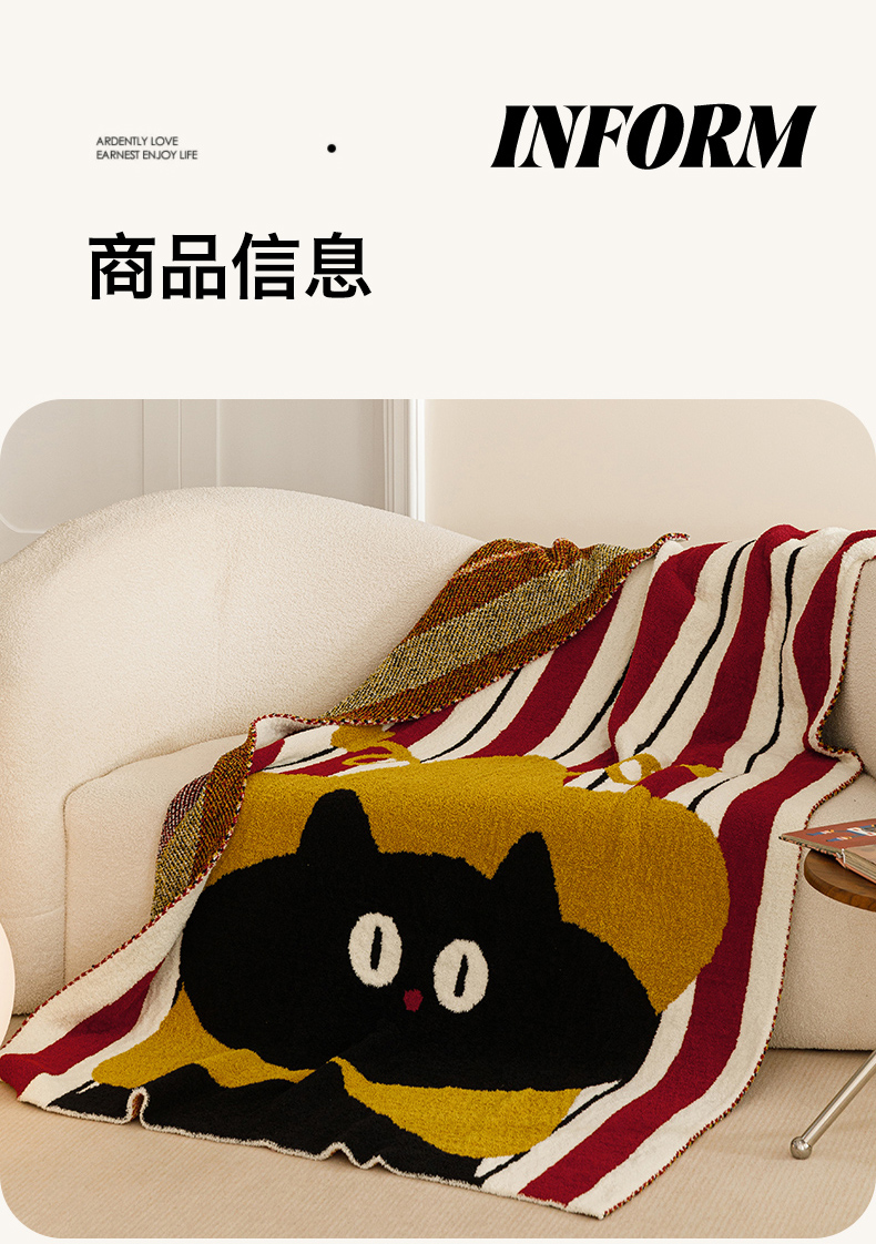 商品名称:瑞米家居 2026新款多功能半边绒盖毯毛毯毯子 慵懒喵-黄