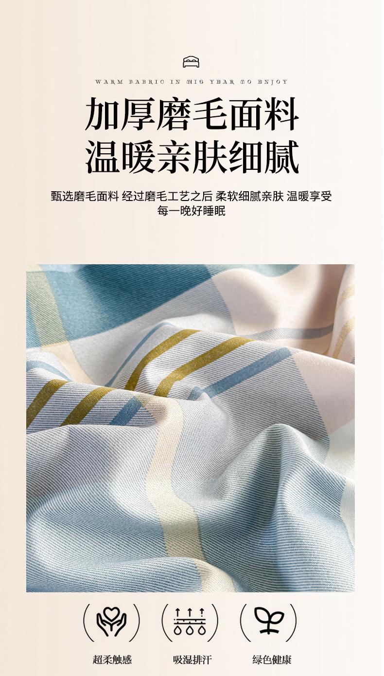 (总)楠沐家纺 2026新款无印风亲肤柔软芦荟棉磨毛单被套,炫彩蓝格,冰淇淋格,赴约,洛拉情怀,水波纹,心动粉,心动蓝