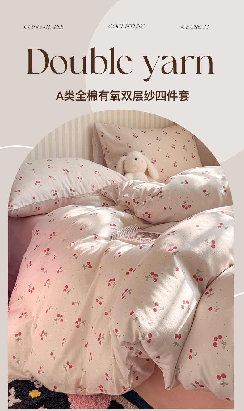 (总)麦伦家居 2025新款A类全棉纯棉有氧双层纱人字纹提花四件套,巴巴兔,冰激凌,彩蝶,方格猫咪,花丛狗狗,卷毛狗,兰花兔,莓莓芝士粉,水果派,西瓜猫,小红帽,小星星