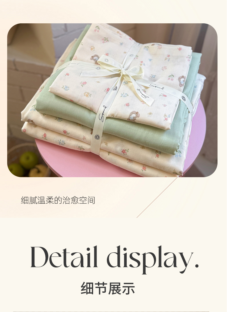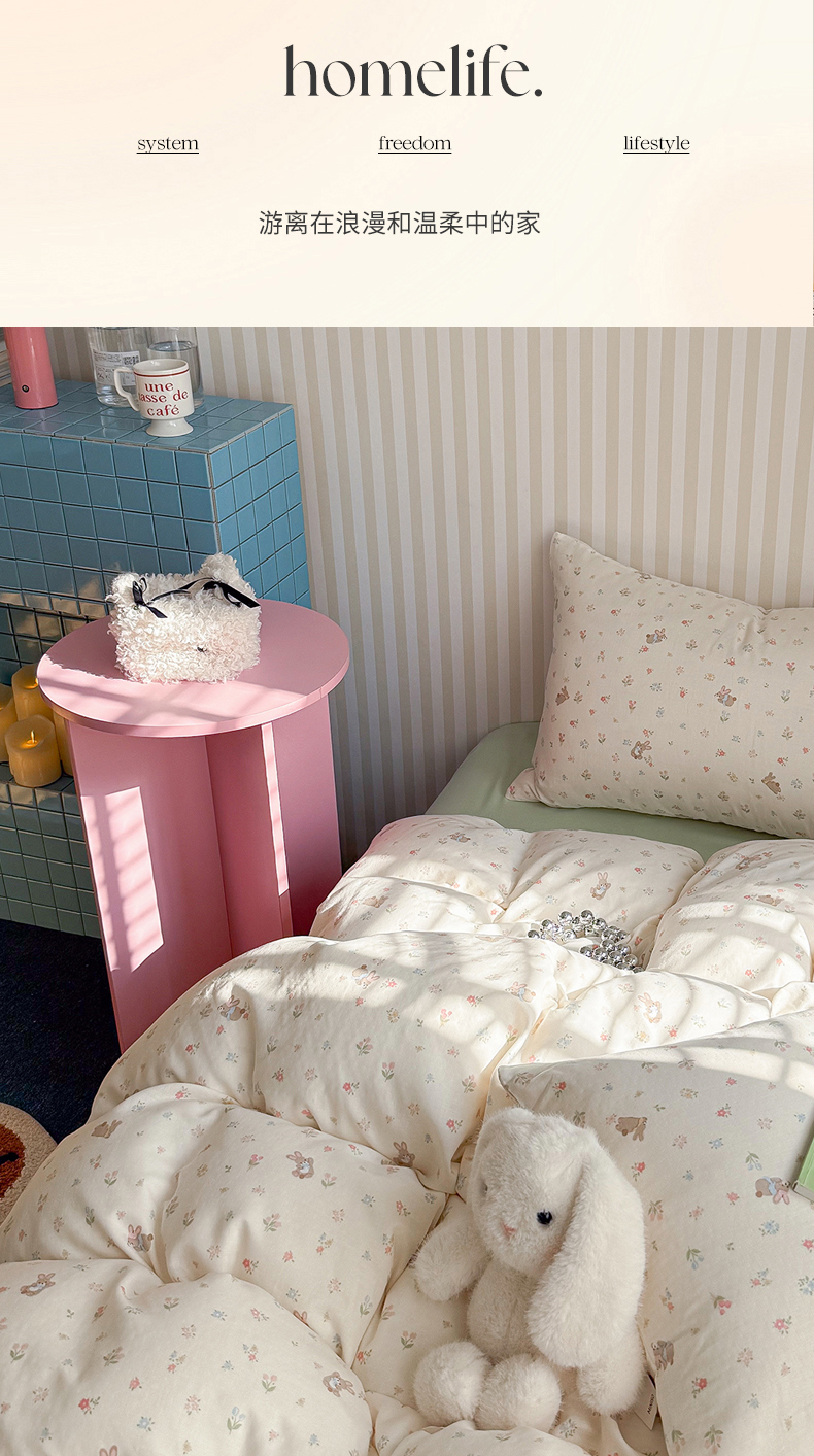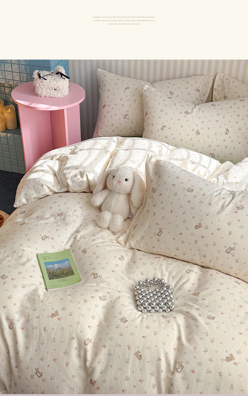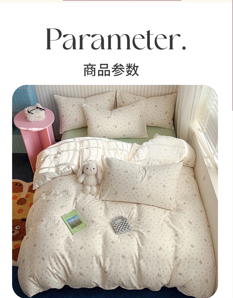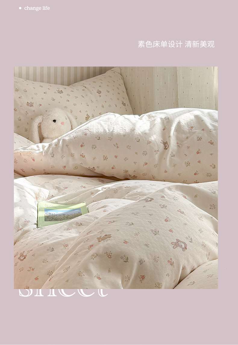 当前位置: 91家纺网 > 商品网购 > 床品套件 > 四件套 > 全棉普通四件套 > 麦伦家居 2026年春夏新款全棉纯棉有氧双层纱印花四件套-第二波 兔兔茉莉