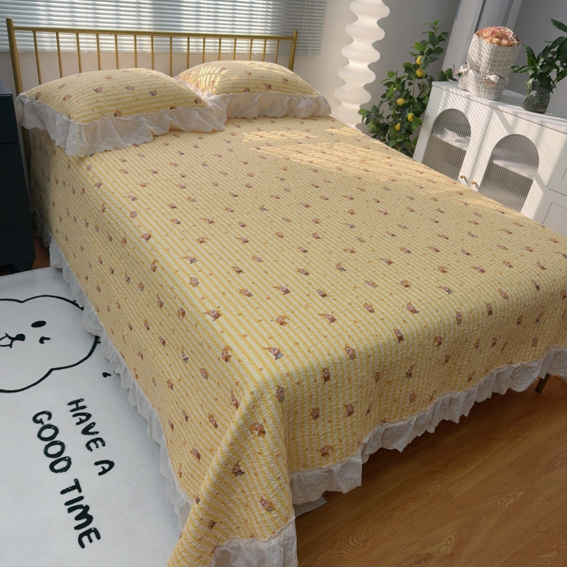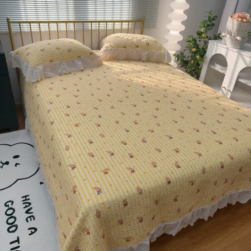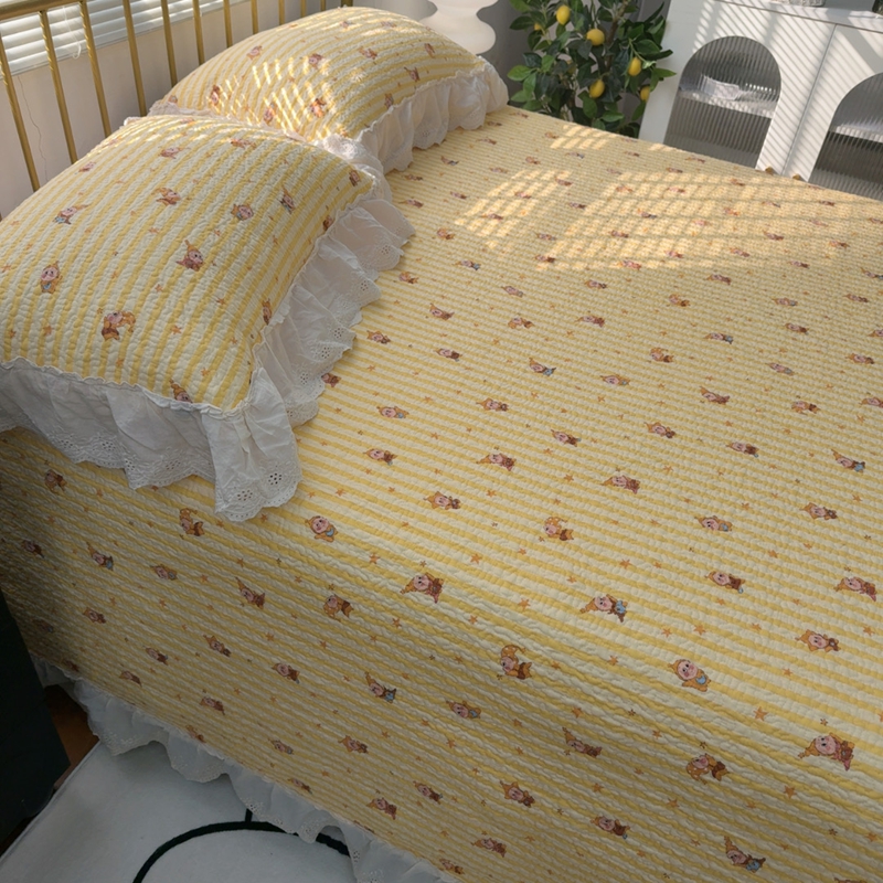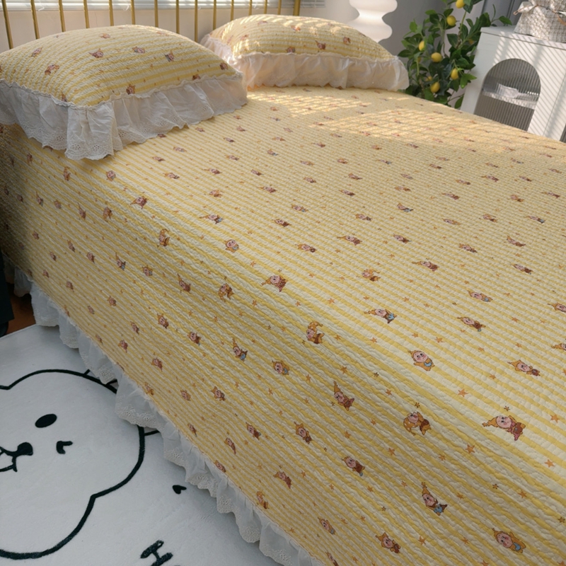 (总)暖居 2026新款大尺寸双层纱高温砂洗245X265床盖三件套,车厘子,粉绿格,洛璃,米妮,旺旺队,小丸子,樱桃可可,饼干熊,木马,小星星