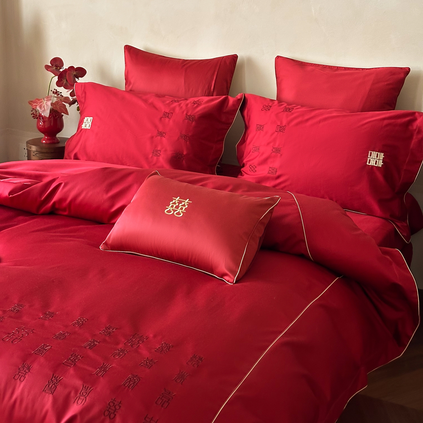 商品名称:(总)西西家居 2026春夏新款大红婚庆100支长绒棉纯棉四件套-欢囍