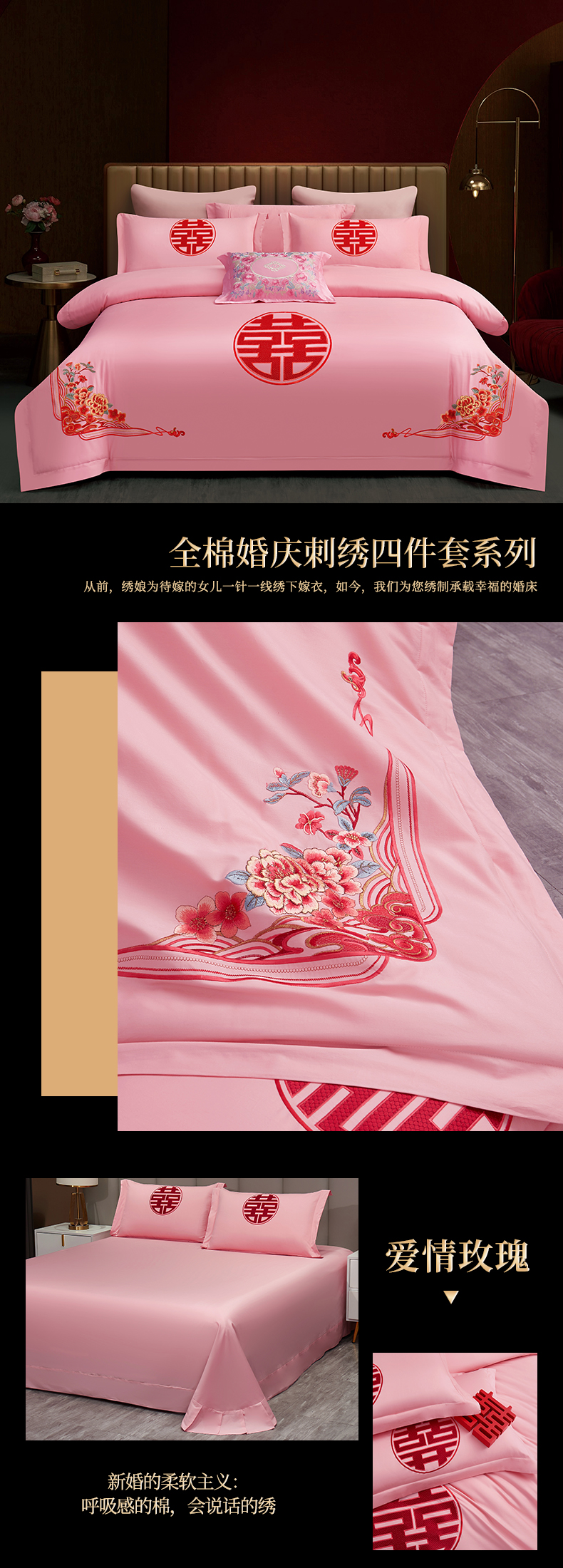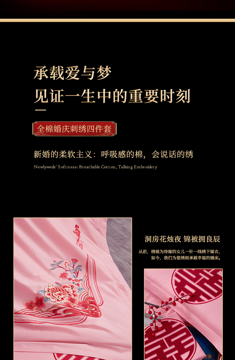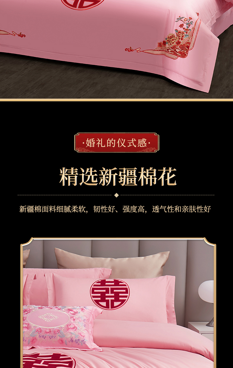 当前位置: 91家纺网 > 商品网购 > 床品套件 > 四件套 > 婚庆四件套 > 浩情国际婚庆供货中心 2026新款100%全棉长绒棉纯棉婚庆四件套结婚刺绣六件套多件套长期供货 (提供买家秀) 爱情玫瑰-粉玉