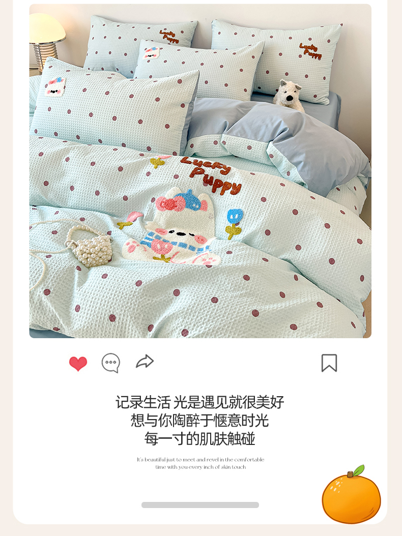 商品名称:笙意家纺 2026新款全棉A版华夫格B版40支毛巾绣四件套 欢乐狗
