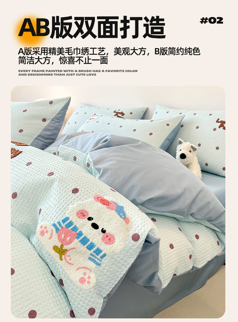 笙意家纺 2026新款全棉A版华夫格B版40支毛巾绣四件套 欢乐狗