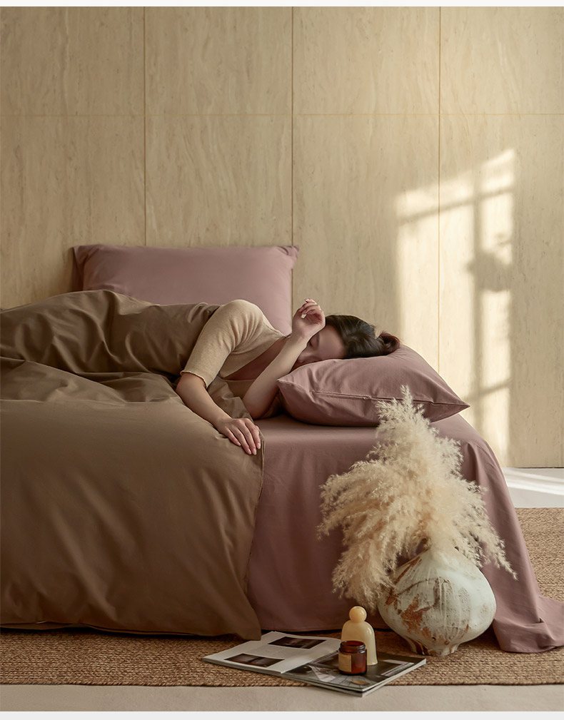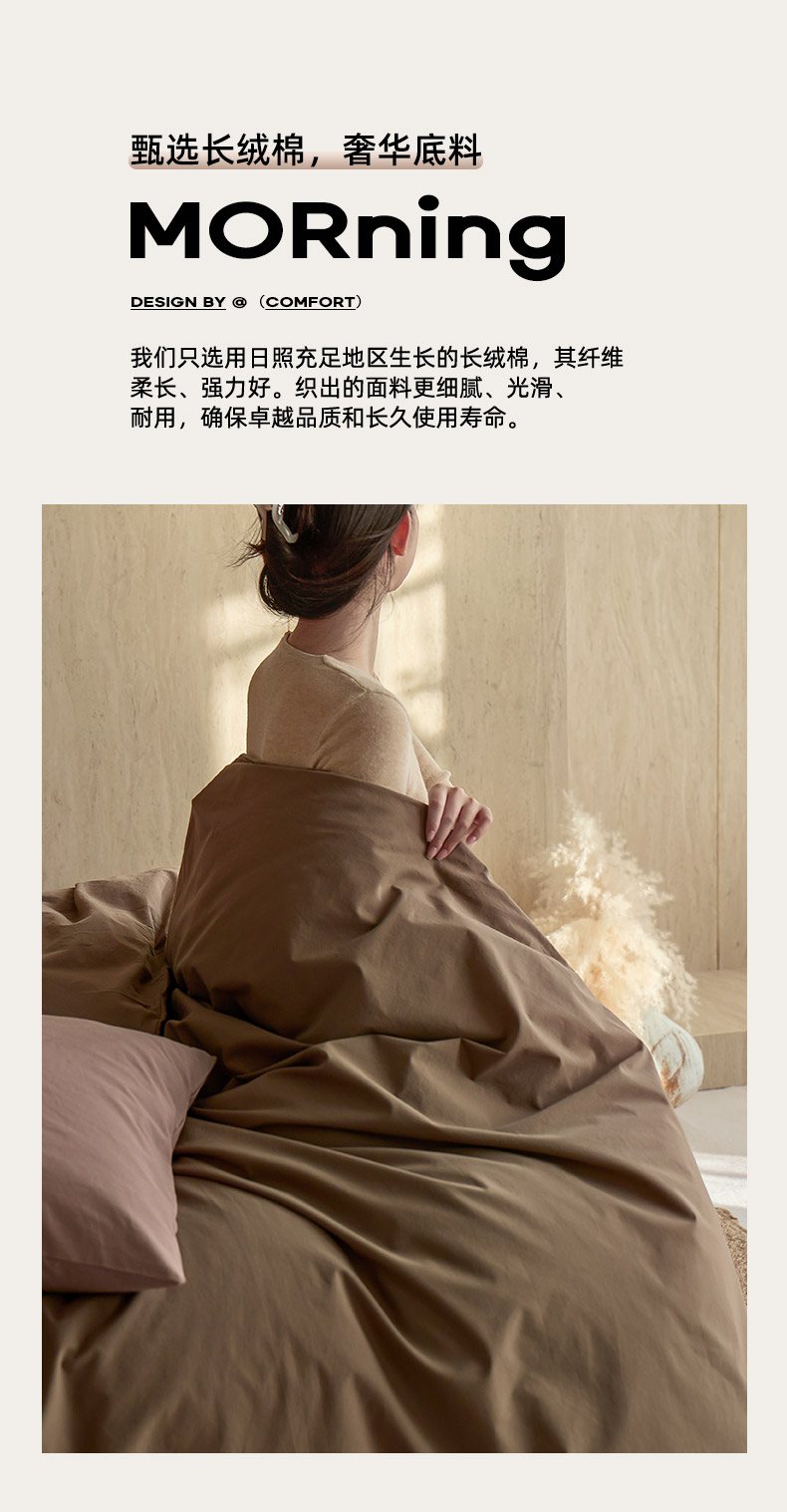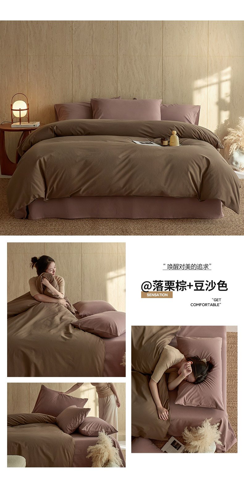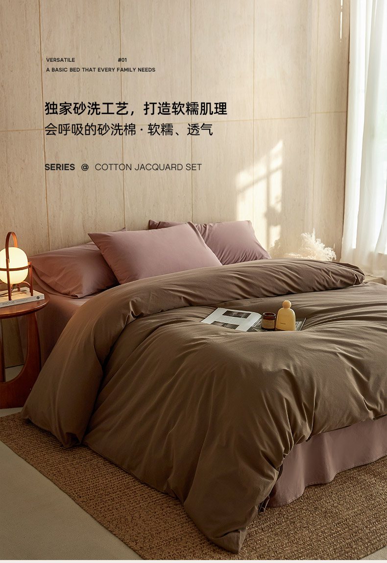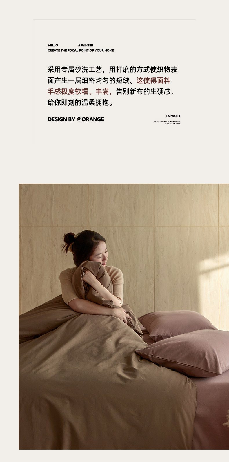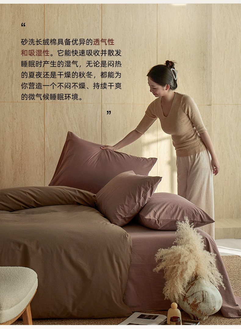 当前位置: 91家纺网 > 商品网购 > 床品套件 > 四件套 > 全棉普通四件套 > 轩和家居 2026新款全棉高支旧感砂洗长绒棉拼色四件套 落栗棕+豆沙色