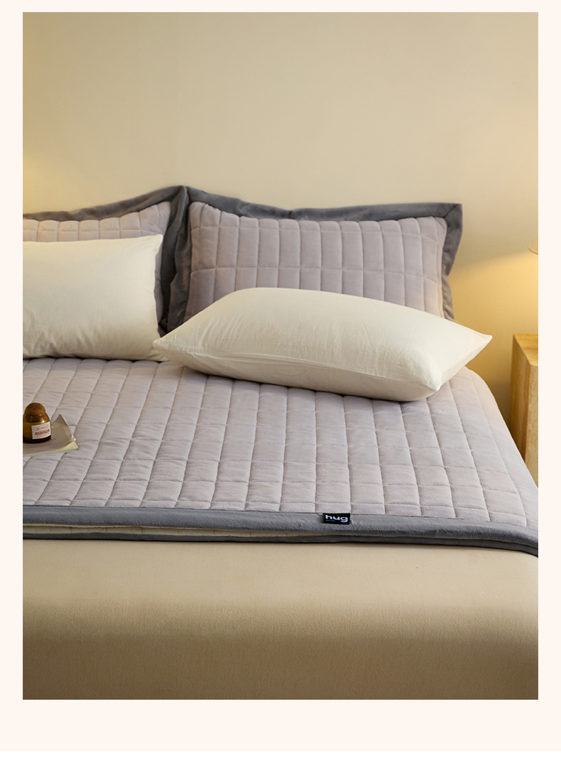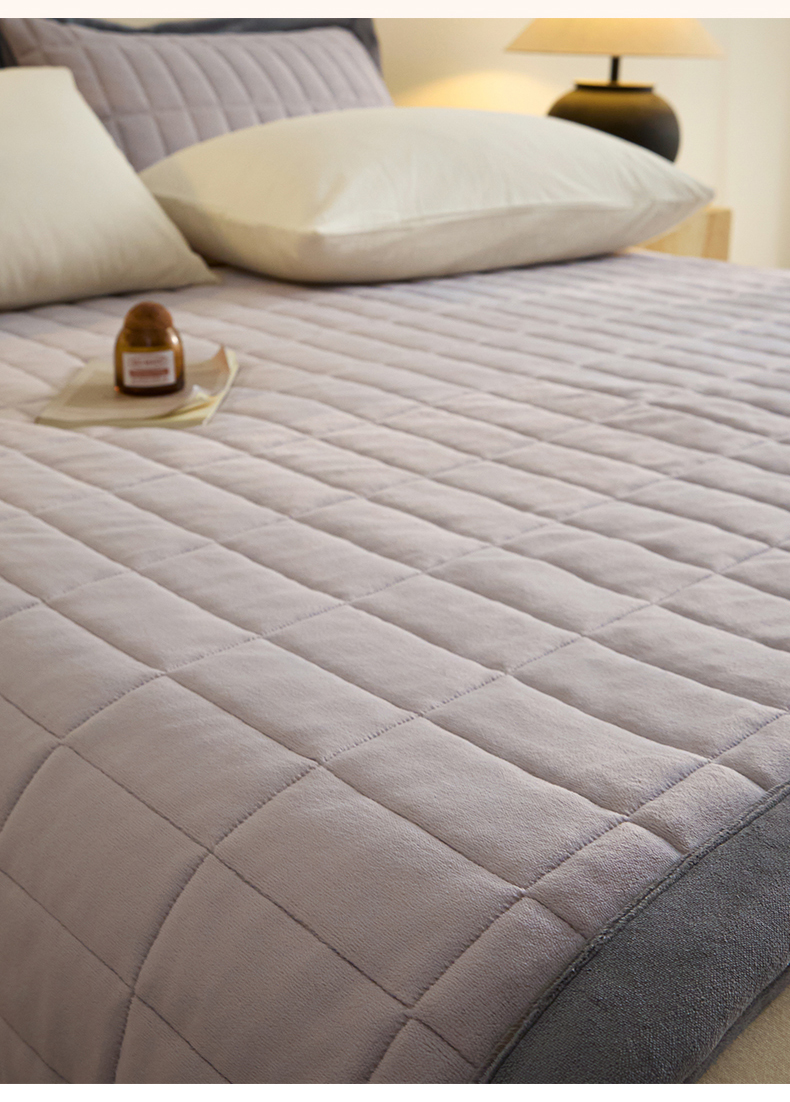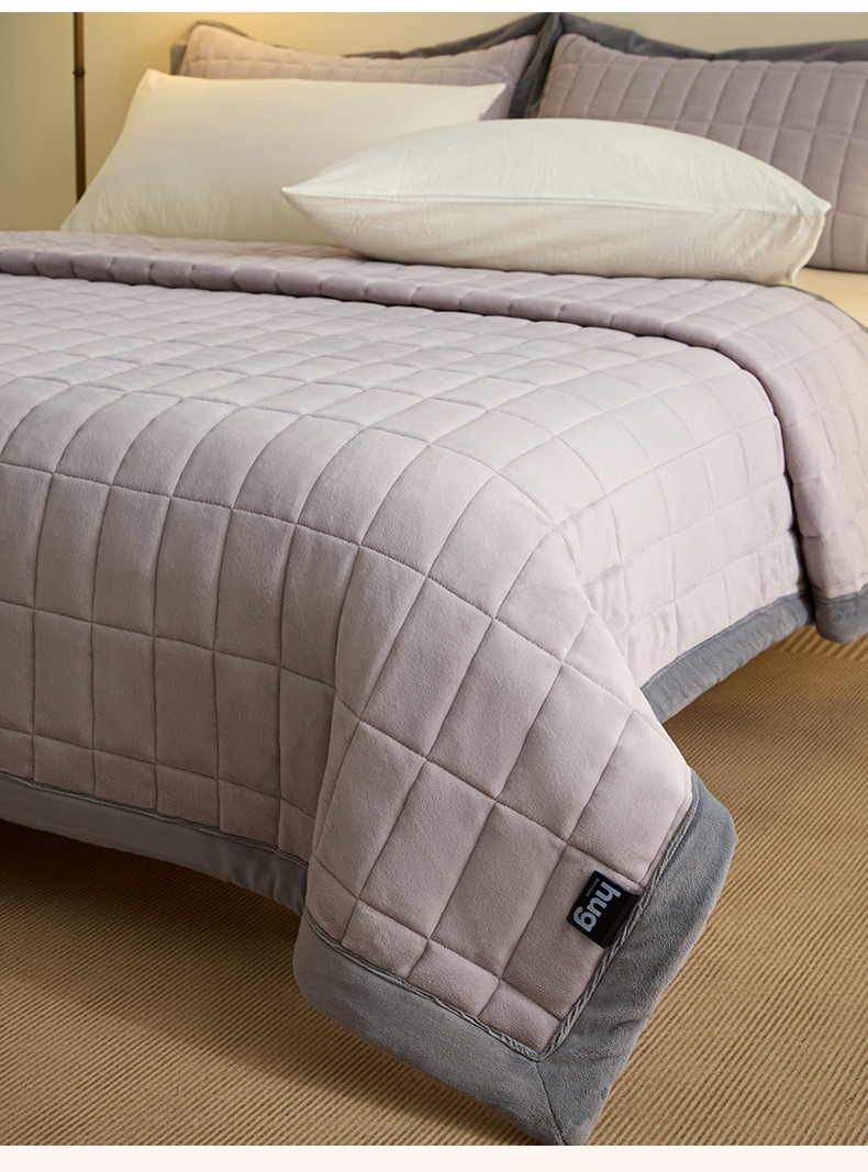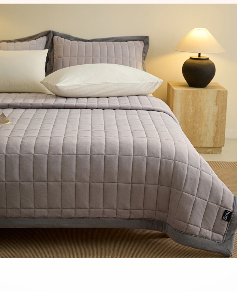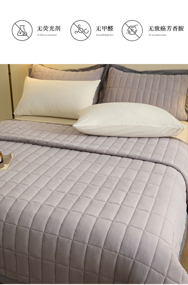 盛秋家纺 2026新款A类牛奶绒夹棉床盖 香草灰+经典灰