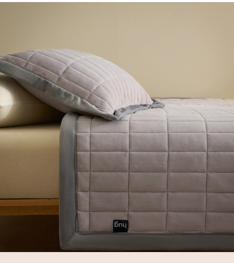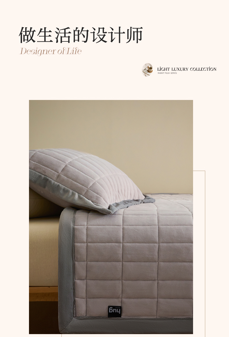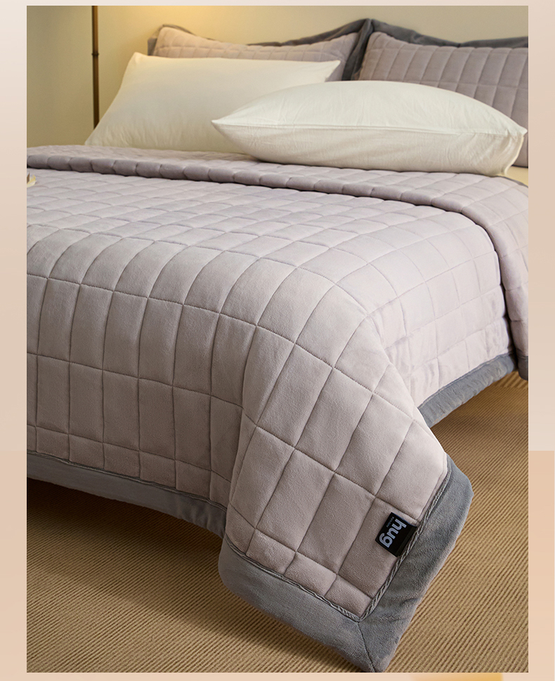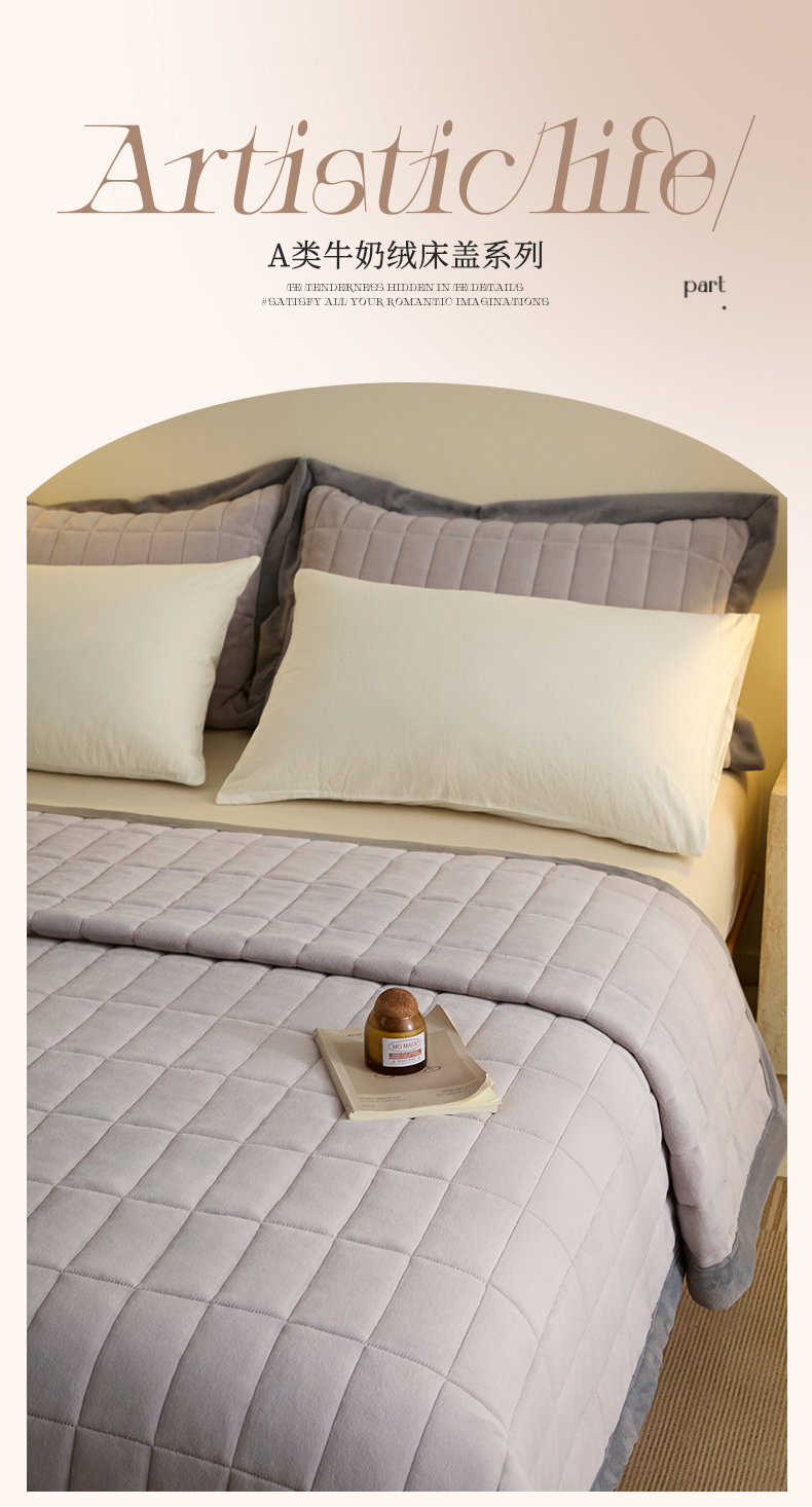 • 91家纺网 家纺一手货源 找家纺 盛秋家纺 2026新款A类牛奶绒夹棉床盖 香草灰+经典灰