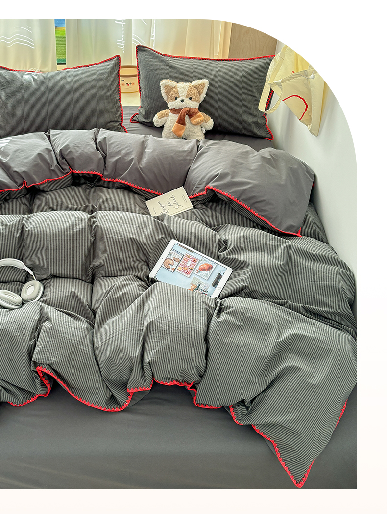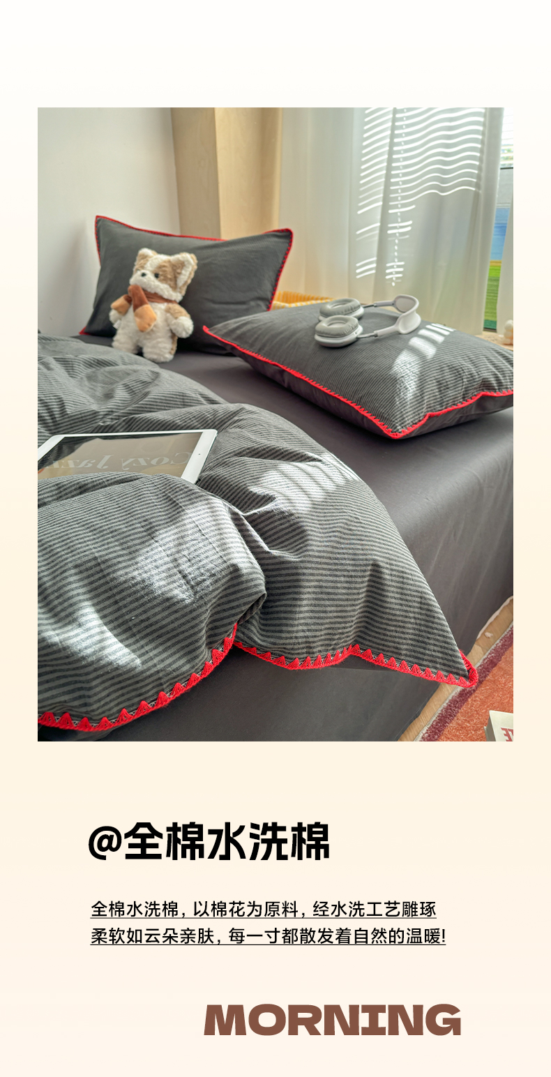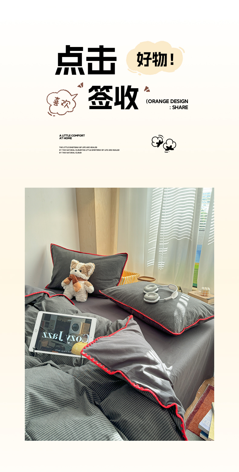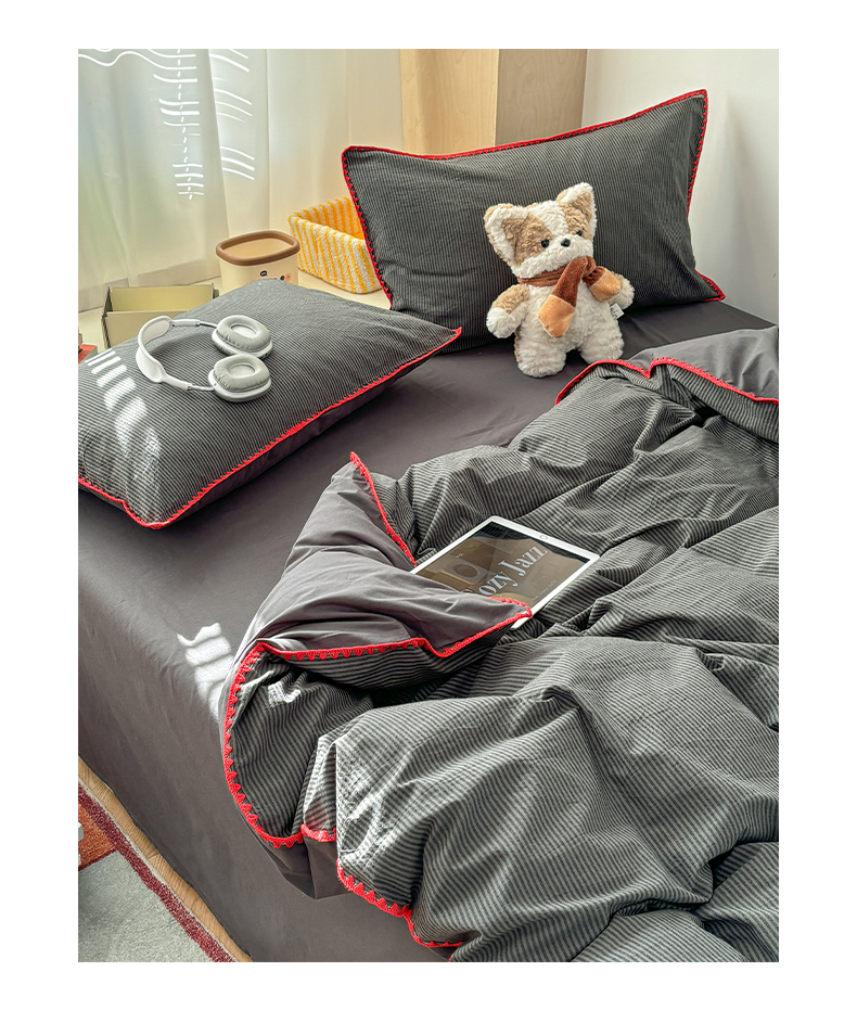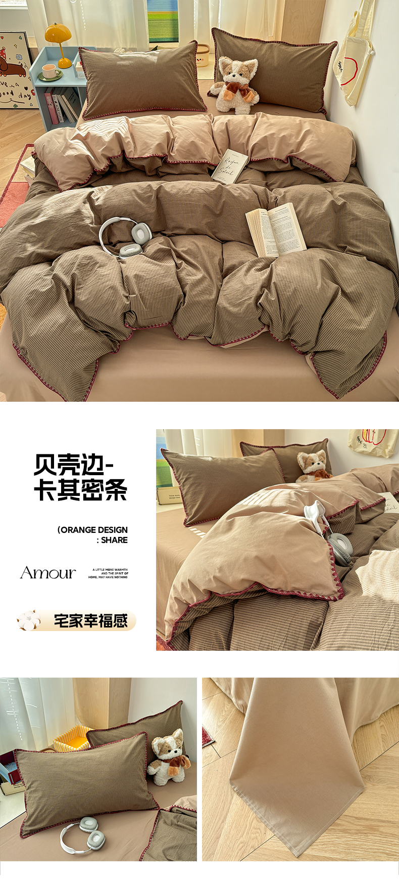 当前位置: 91家纺网 > 商品网购 > 床品套件 > 四件套 > 全棉普通四件套 > 雅居纺家纺 2026新款全棉色织水洗棉贝壳边四件套 贝壳边-深灰密条