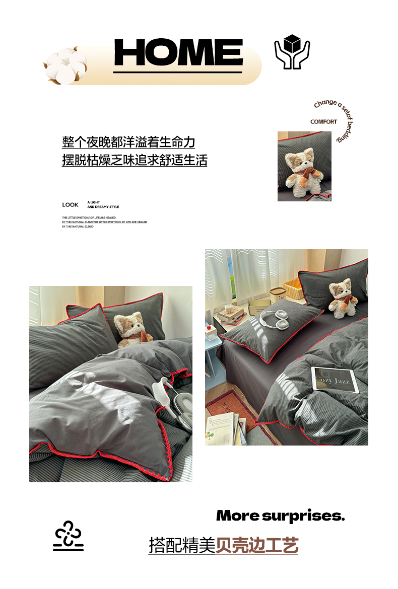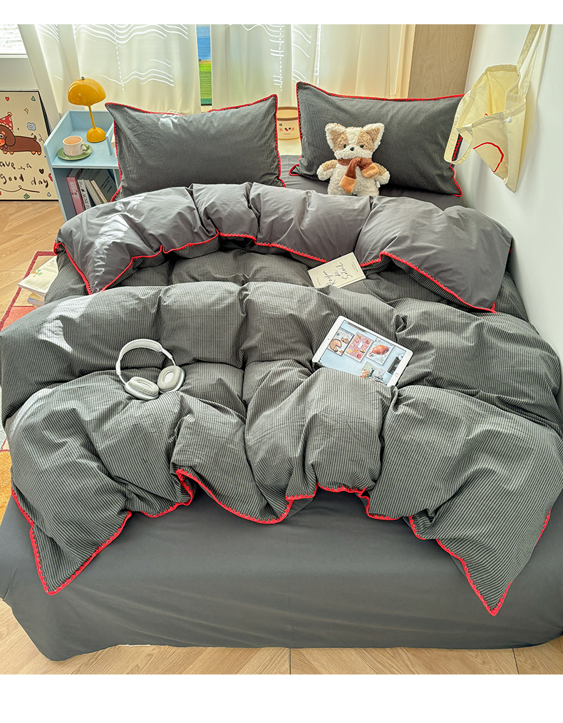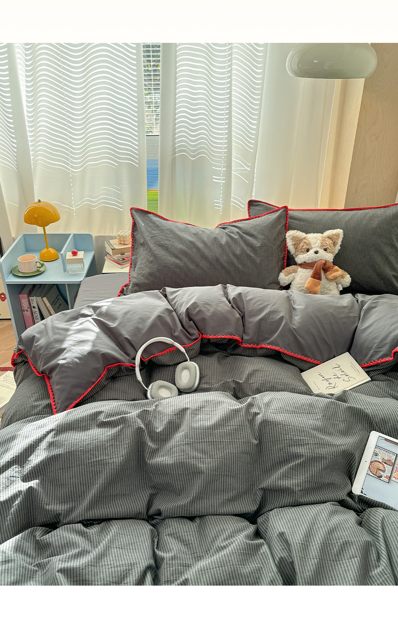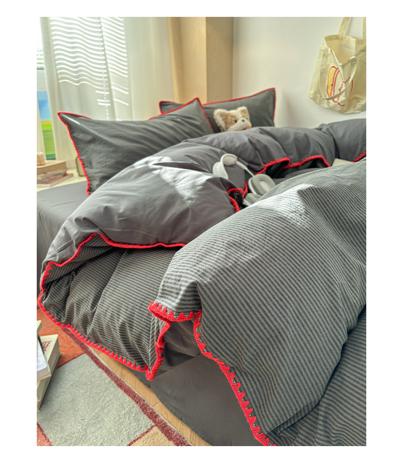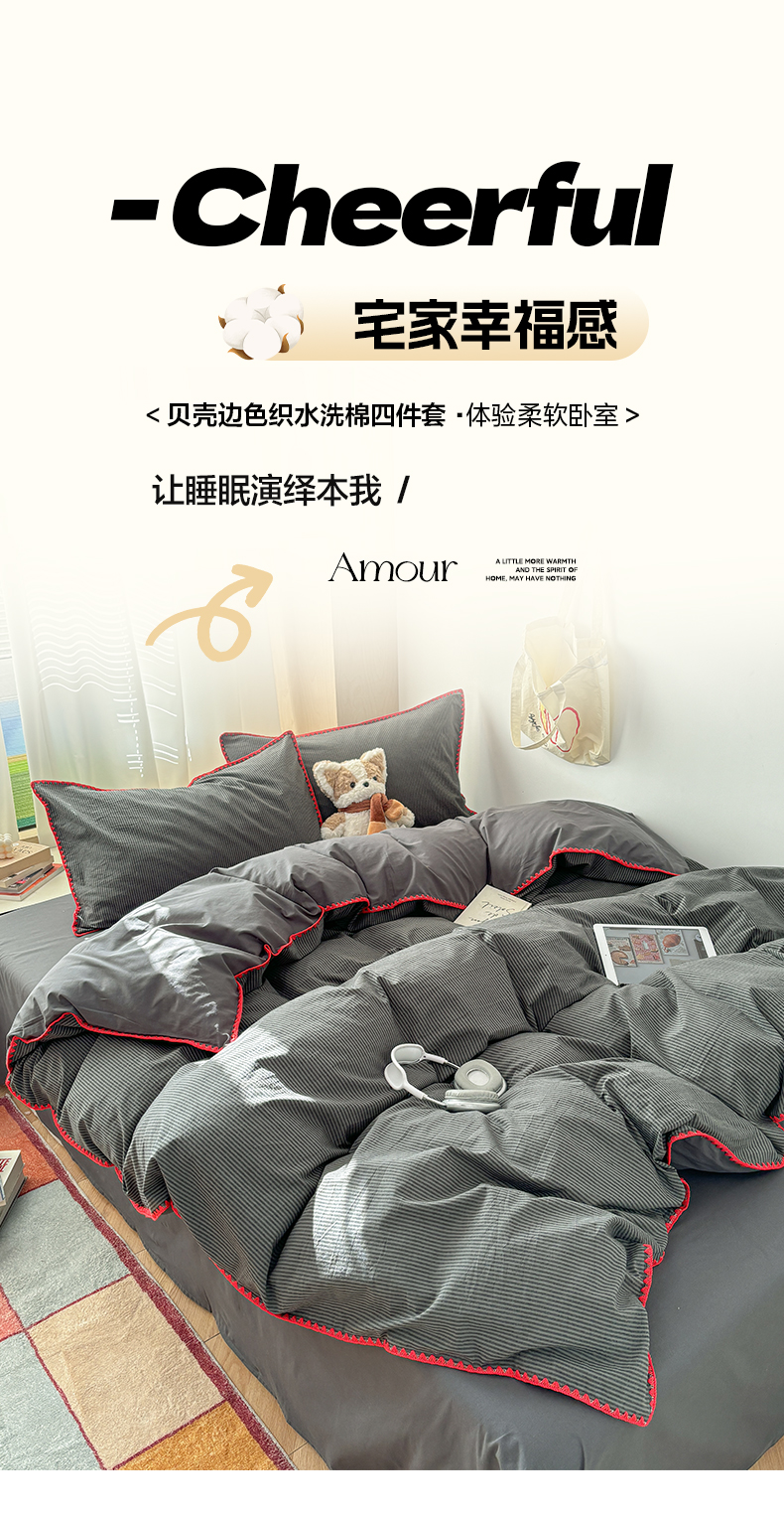 当前位置: 91家纺网 > 商品网购 > 床品套件 > 四件套 > 全棉普通四件套 > 雅居纺家纺 2026新款全棉色织水洗棉贝壳边四件套 贝壳边-深灰密条