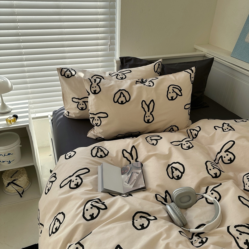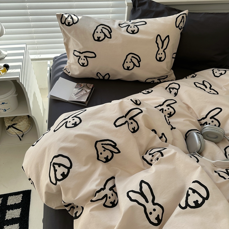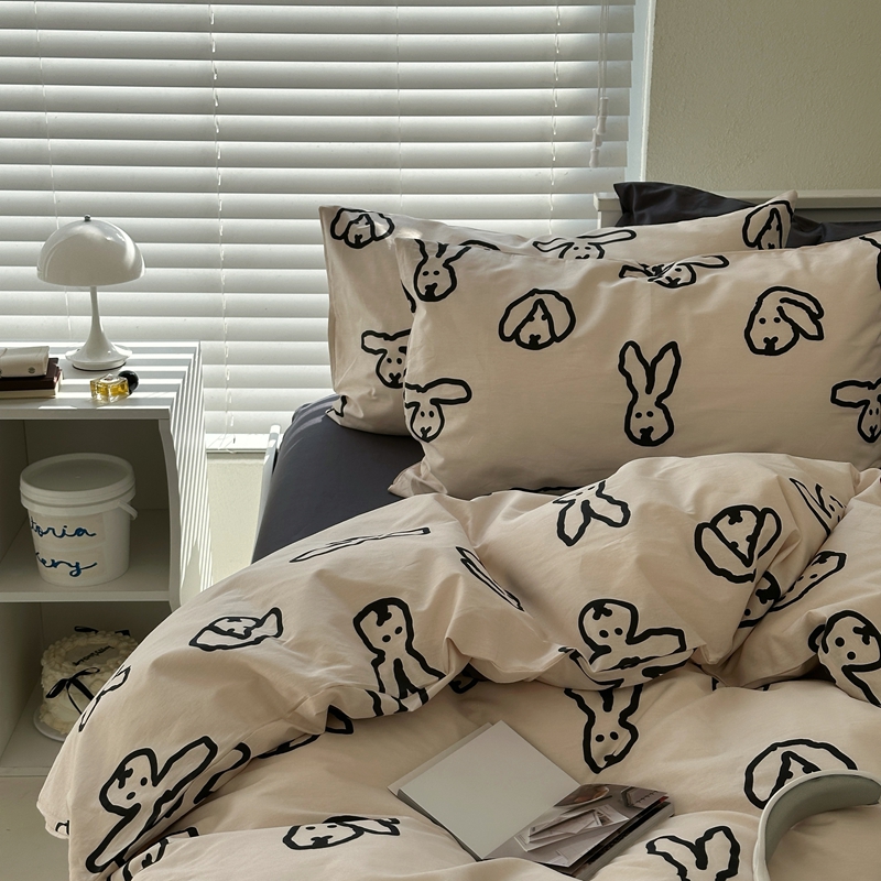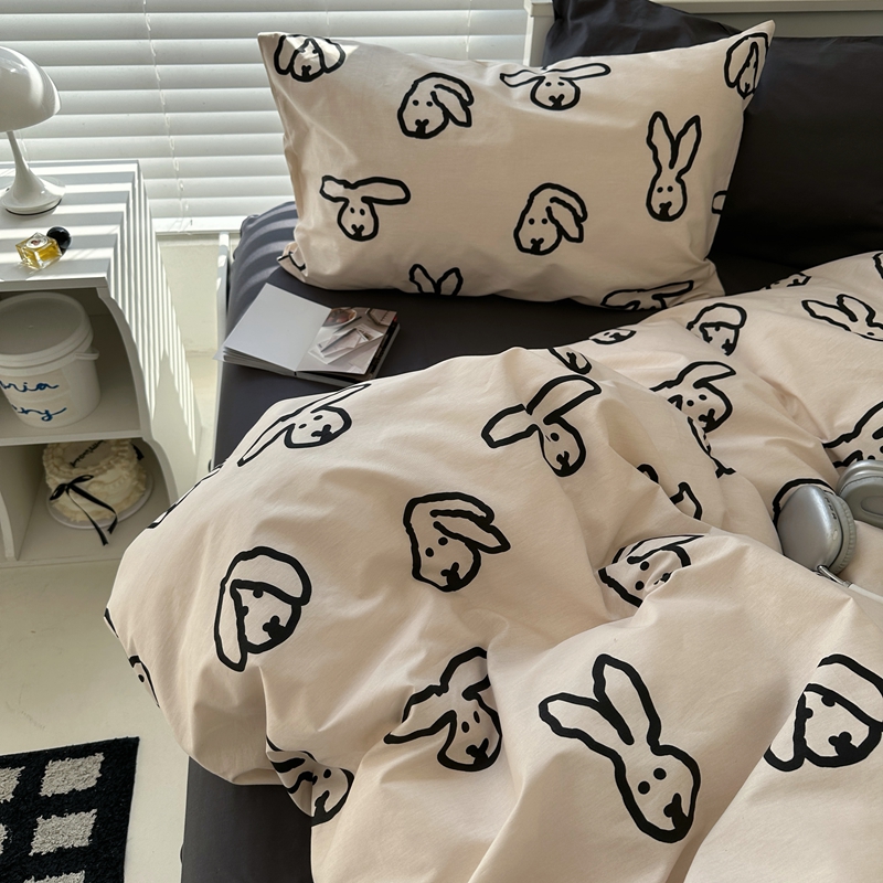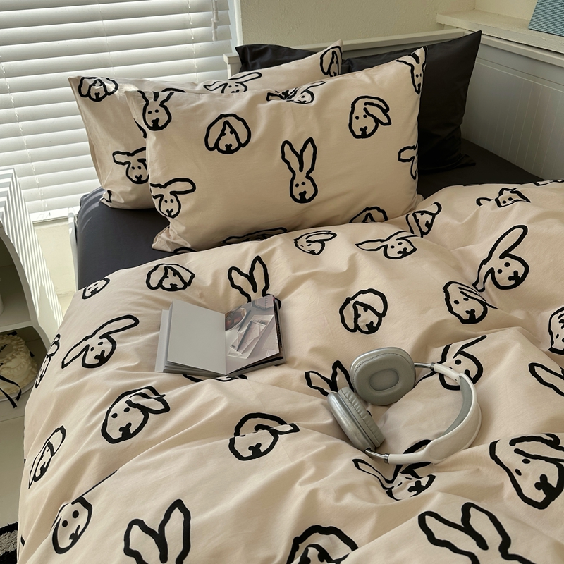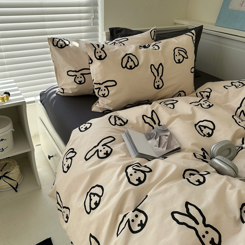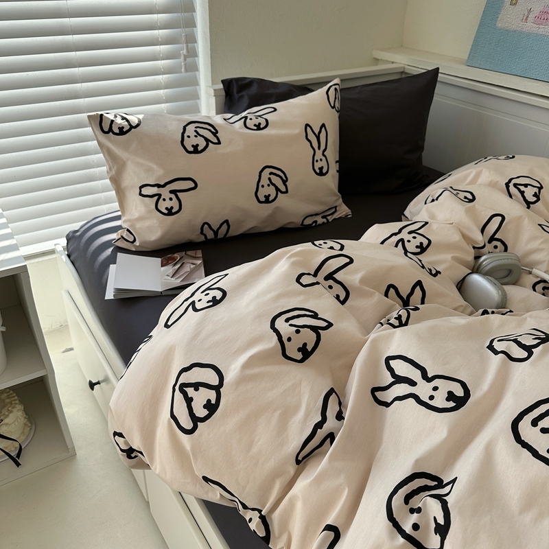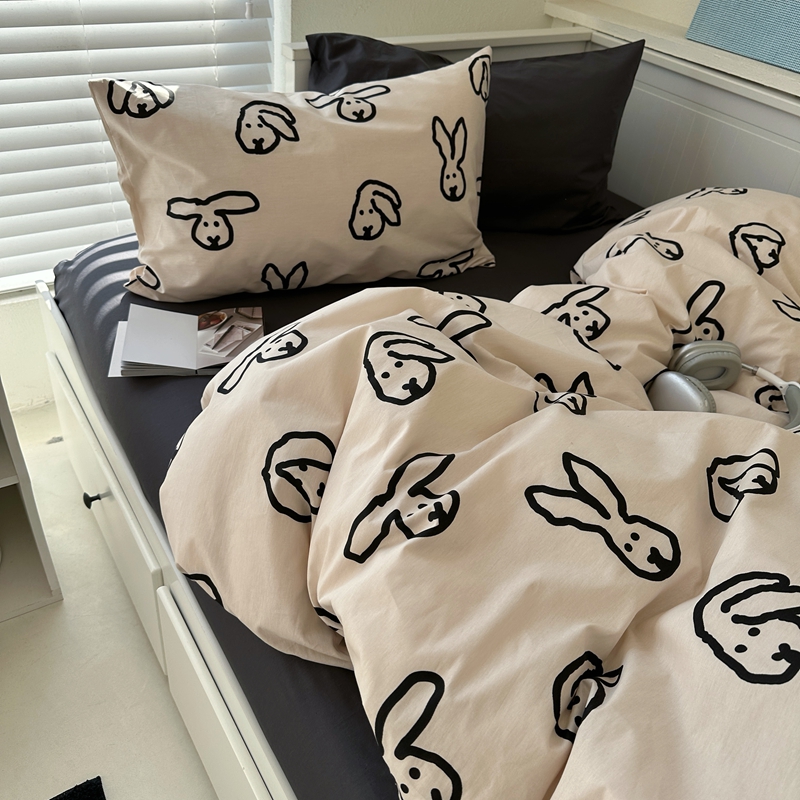 当前位置: 91家纺网 > 商品网购 > 床品套件 > 四件套 > 全棉普通四件套 > 2026纯棉小清新ins风四件套可爱卡通被套纯色床单1.8床笠加大被套学生宿舍三件套 TuTu-深灰