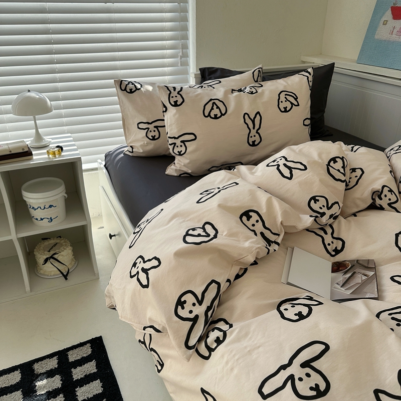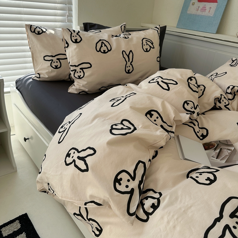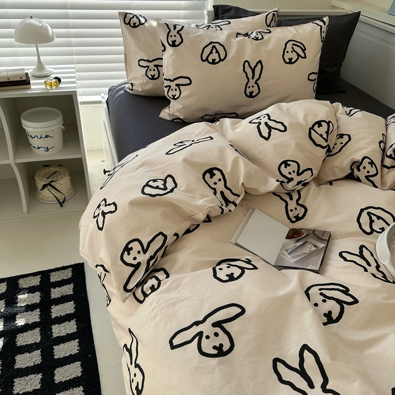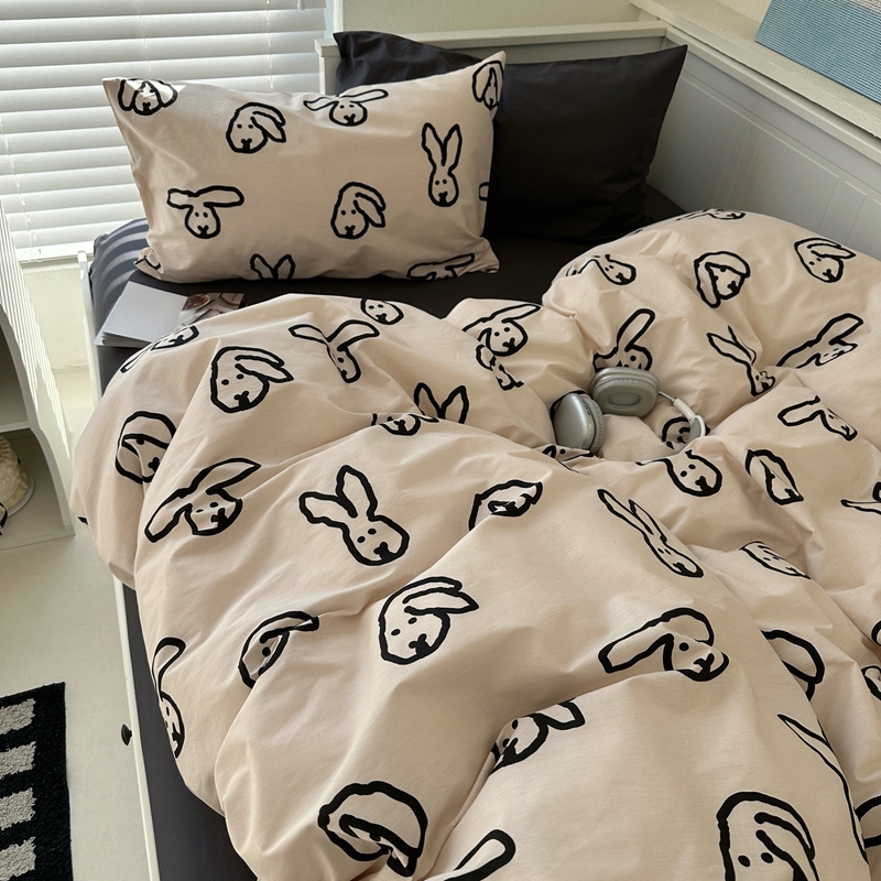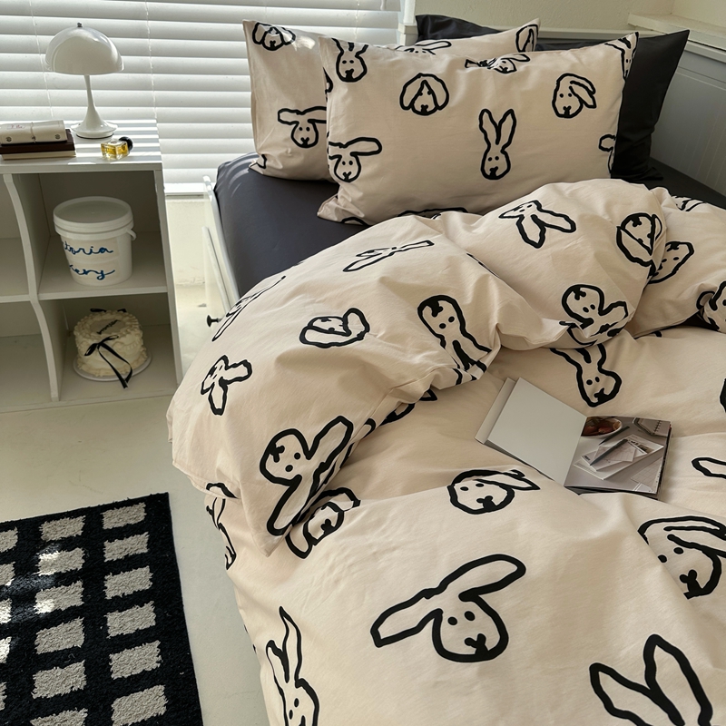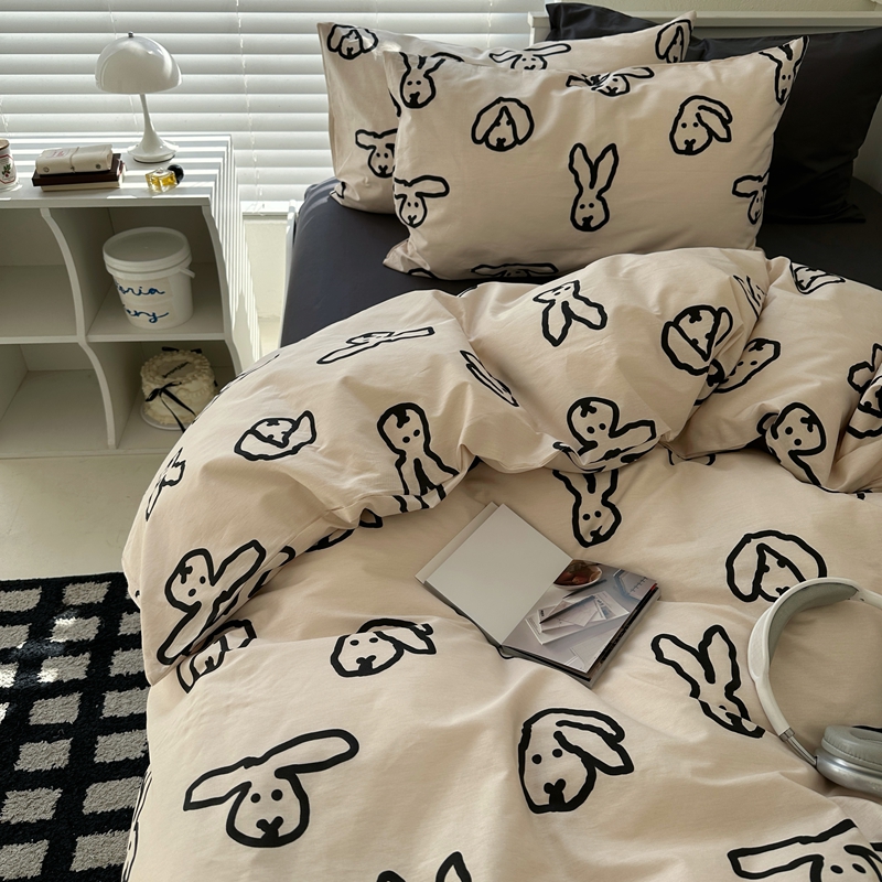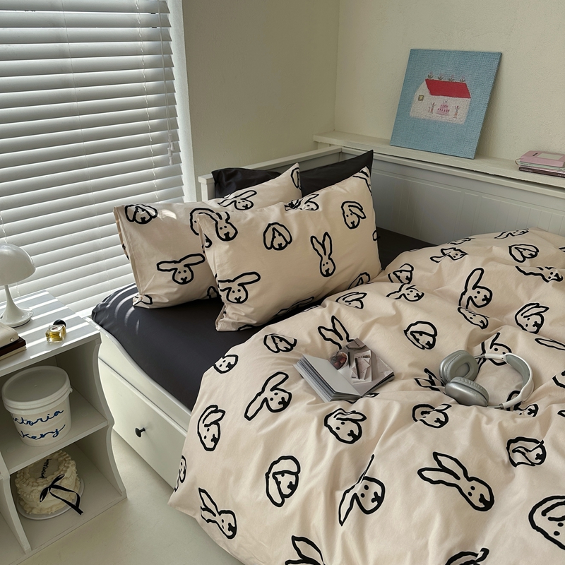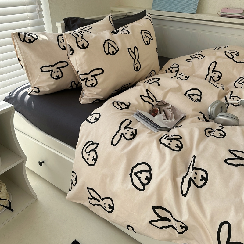 当前位置: 91家纺网 > 商品网购 > 床品套件 > 四件套 > 全棉普通四件套 > 2026纯棉小清新ins风四件套可爱卡通被套纯色床单1.8床笠加大被套学生宿舍三件套 TuTu-深灰