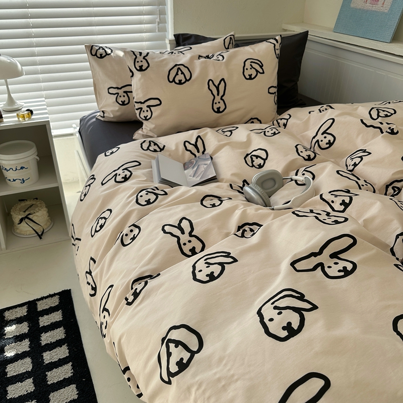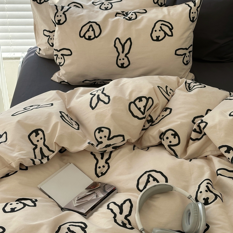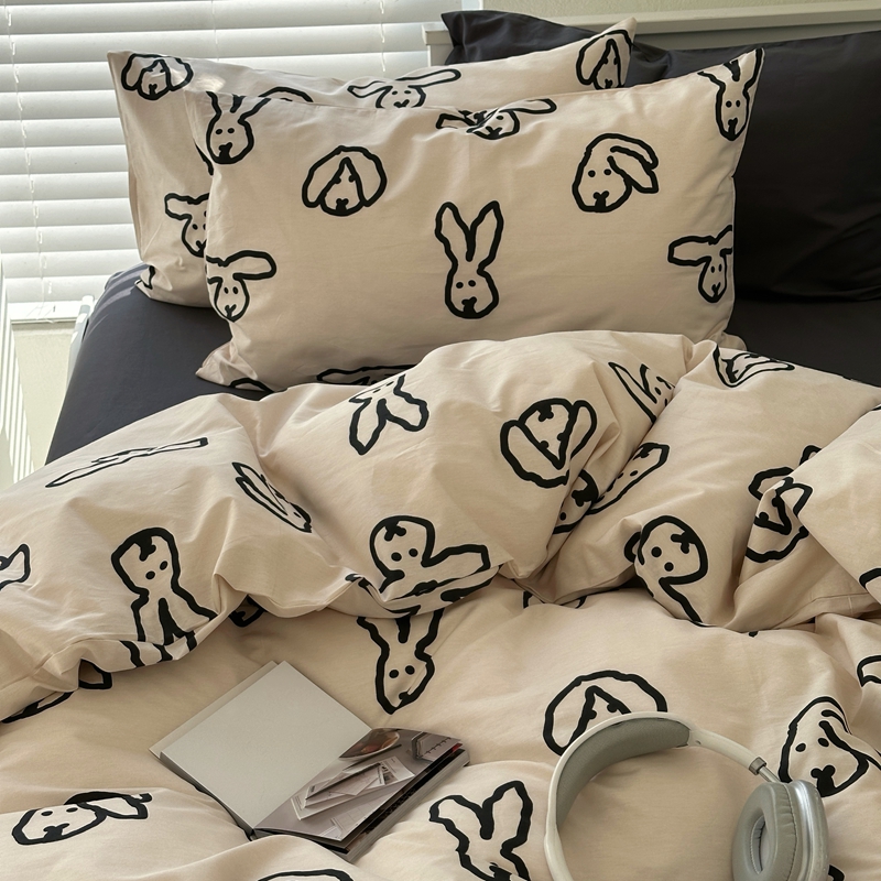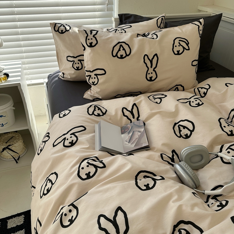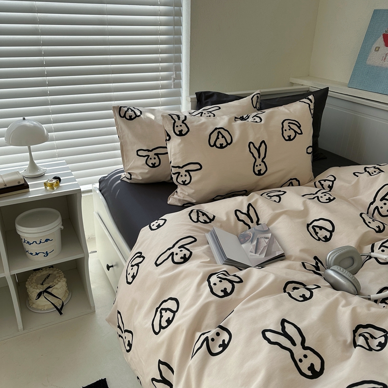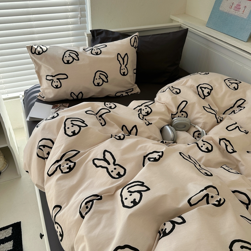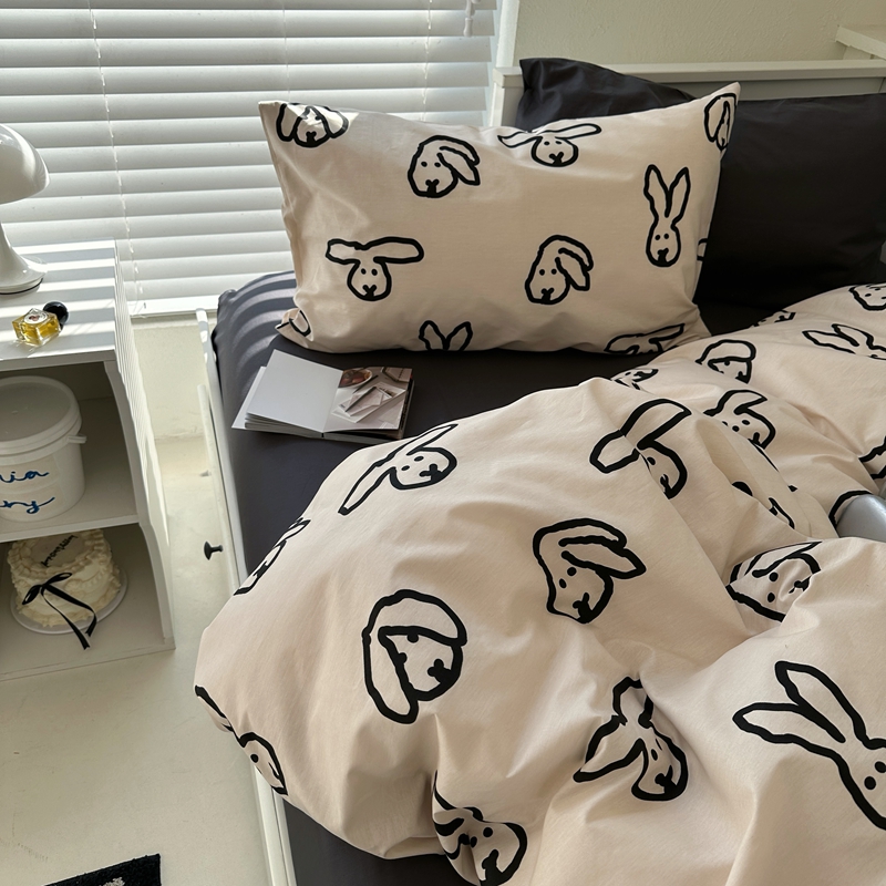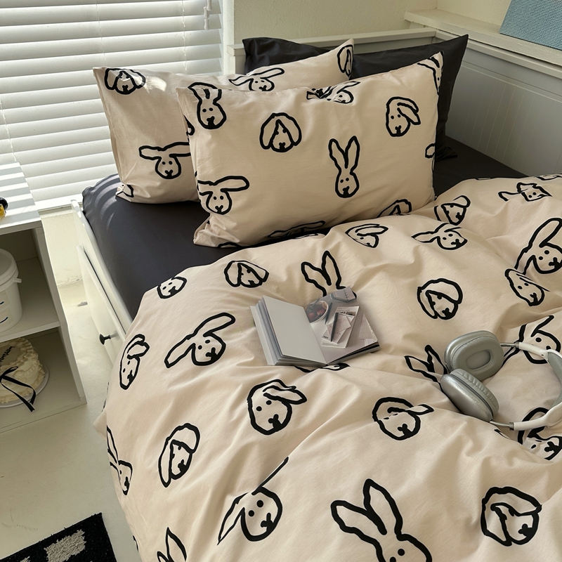 当前位置: 91家纺网 > 商品网购 > 床品套件 > 四件套 > 全棉普通四件套 > 2026纯棉小清新ins风四件套可爱卡通被套纯色床单1.8床笠加大被套学生宿舍三件套 TuTu-深灰