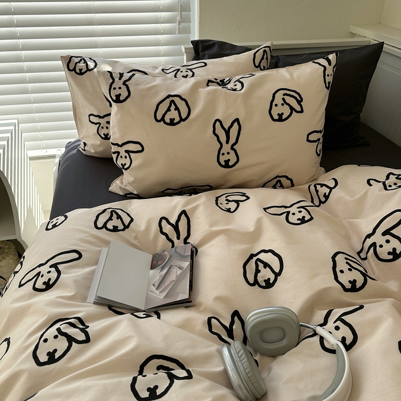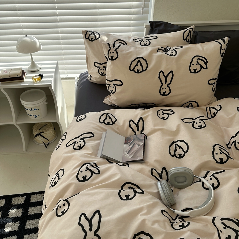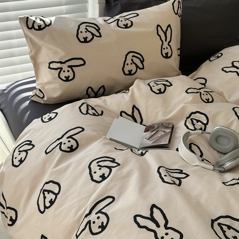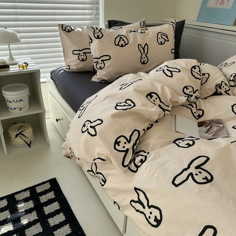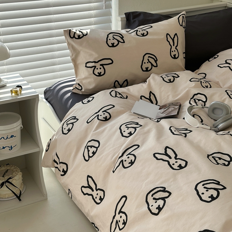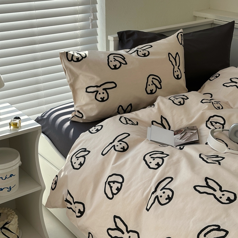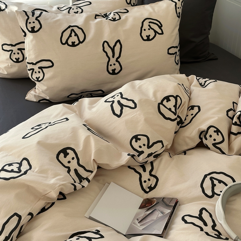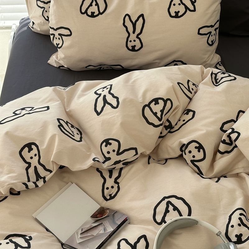 当前位置: 91家纺网 > 商品网购 > 床品套件 > 四件套 > 全棉普通四件套 > 2026纯棉小清新ins风四件套可爱卡通被套纯色床单1.8床笠加大被套学生宿舍三件套 TuTu-深灰