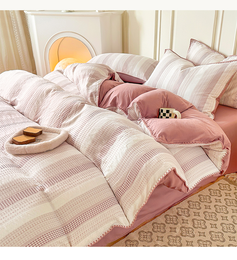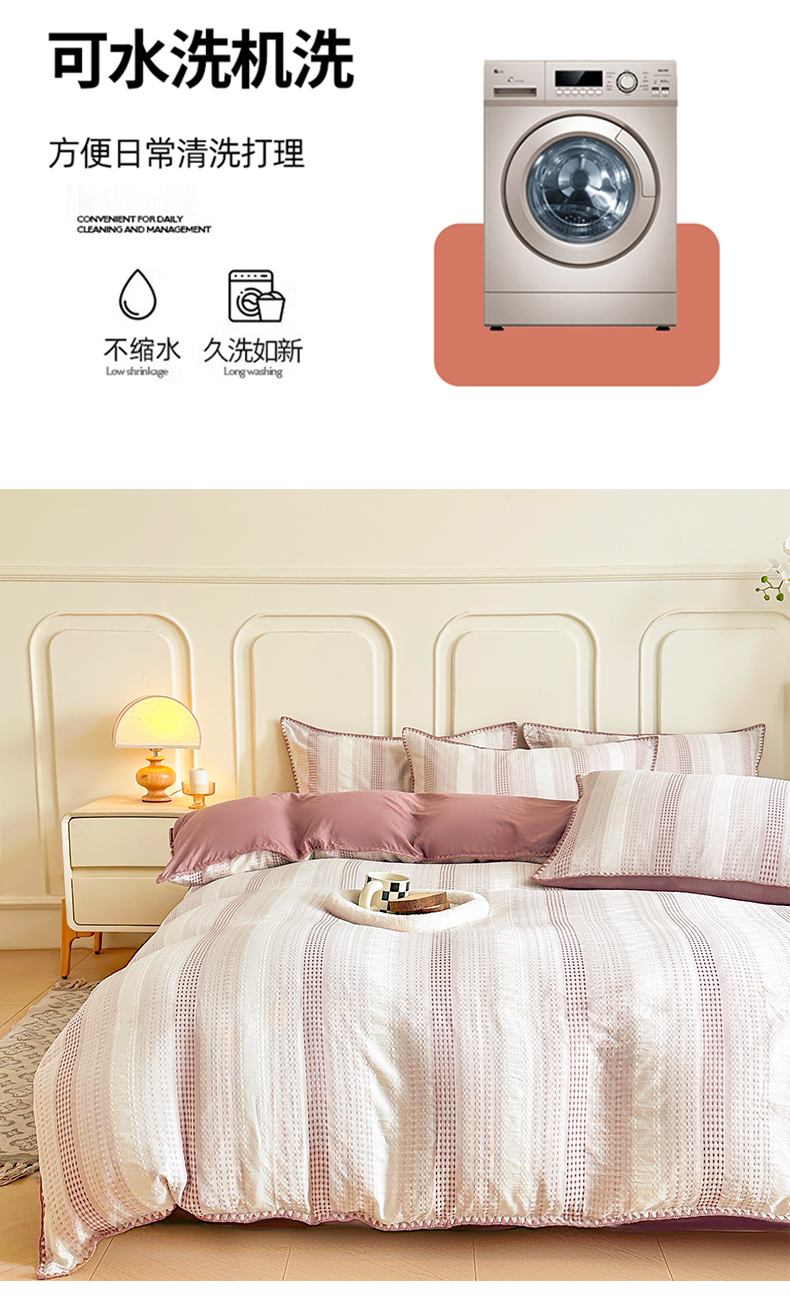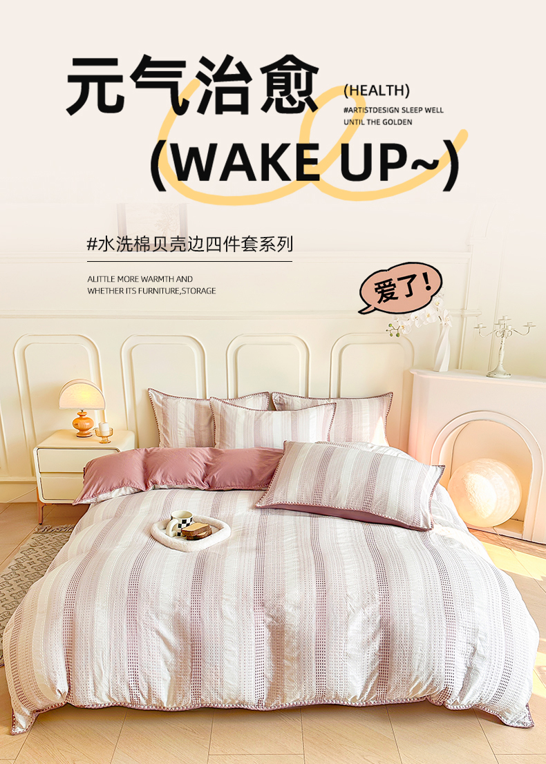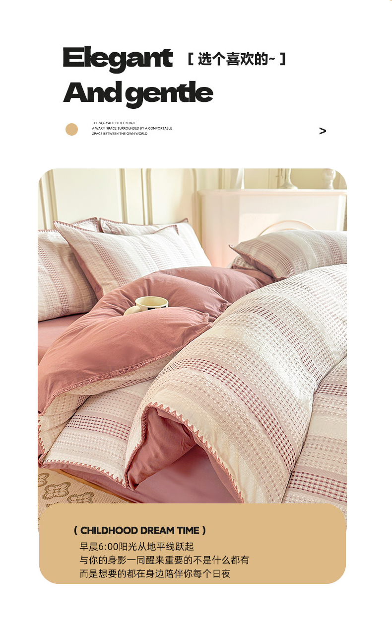当前位置: 91家纺网 > 商品网购 > 床品套件 > 四件套 > 水洗棉四件套 > 木子家纺 2026新款水洗棉贝壳边四件套-皖沙 绛沙