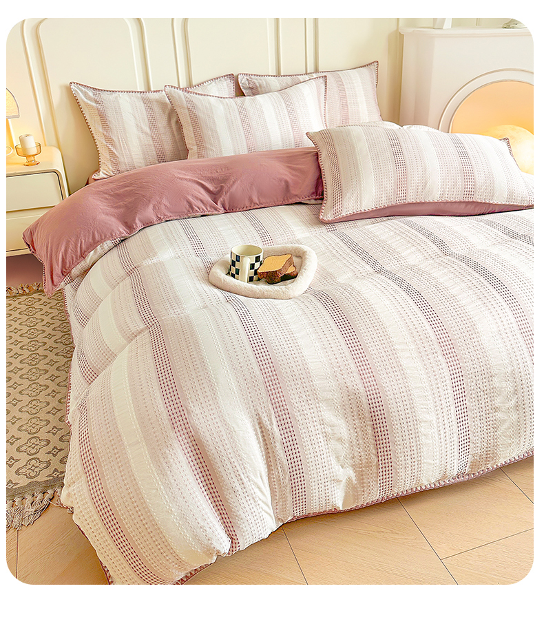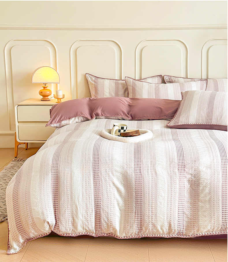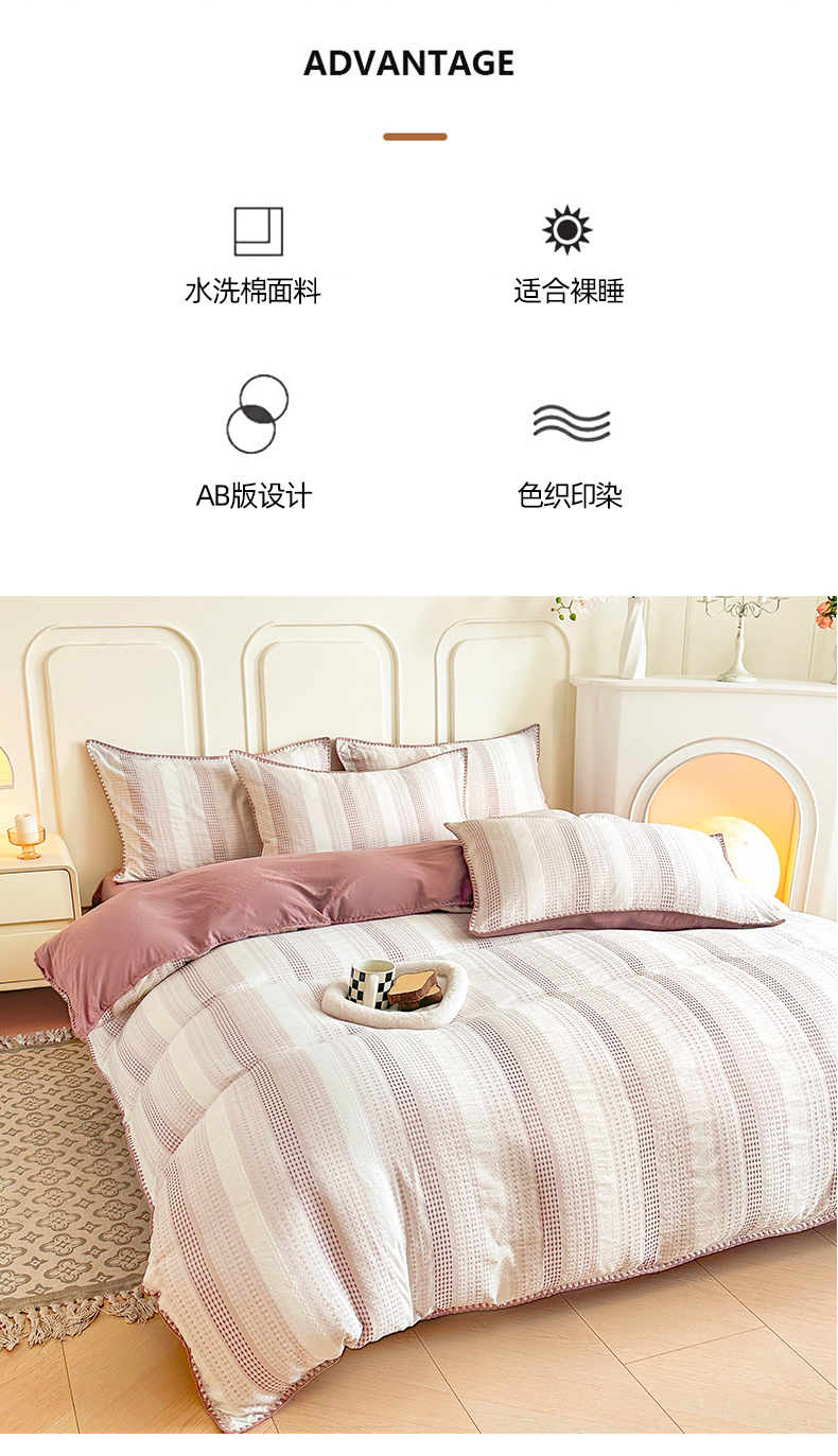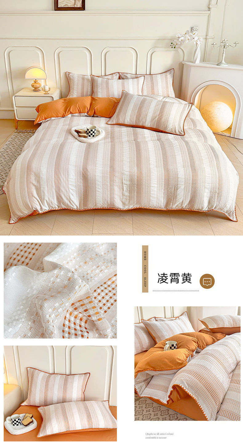 当前位置: 91家纺网 > 商品网购 > 床品套件 > 四件套 > 水洗棉四件套 > 木子家纺 2026新款水洗棉贝壳边四件套-皖沙 绛沙