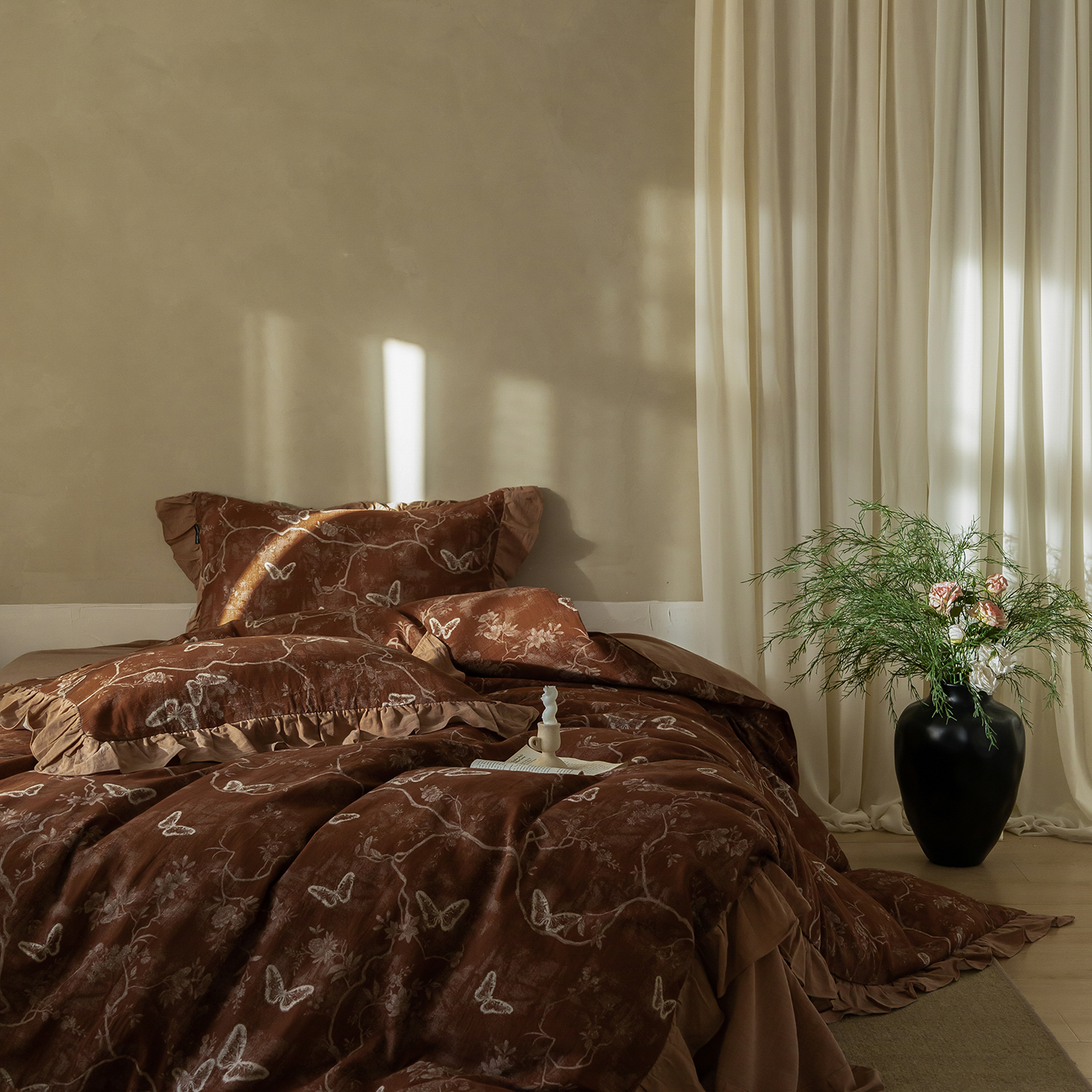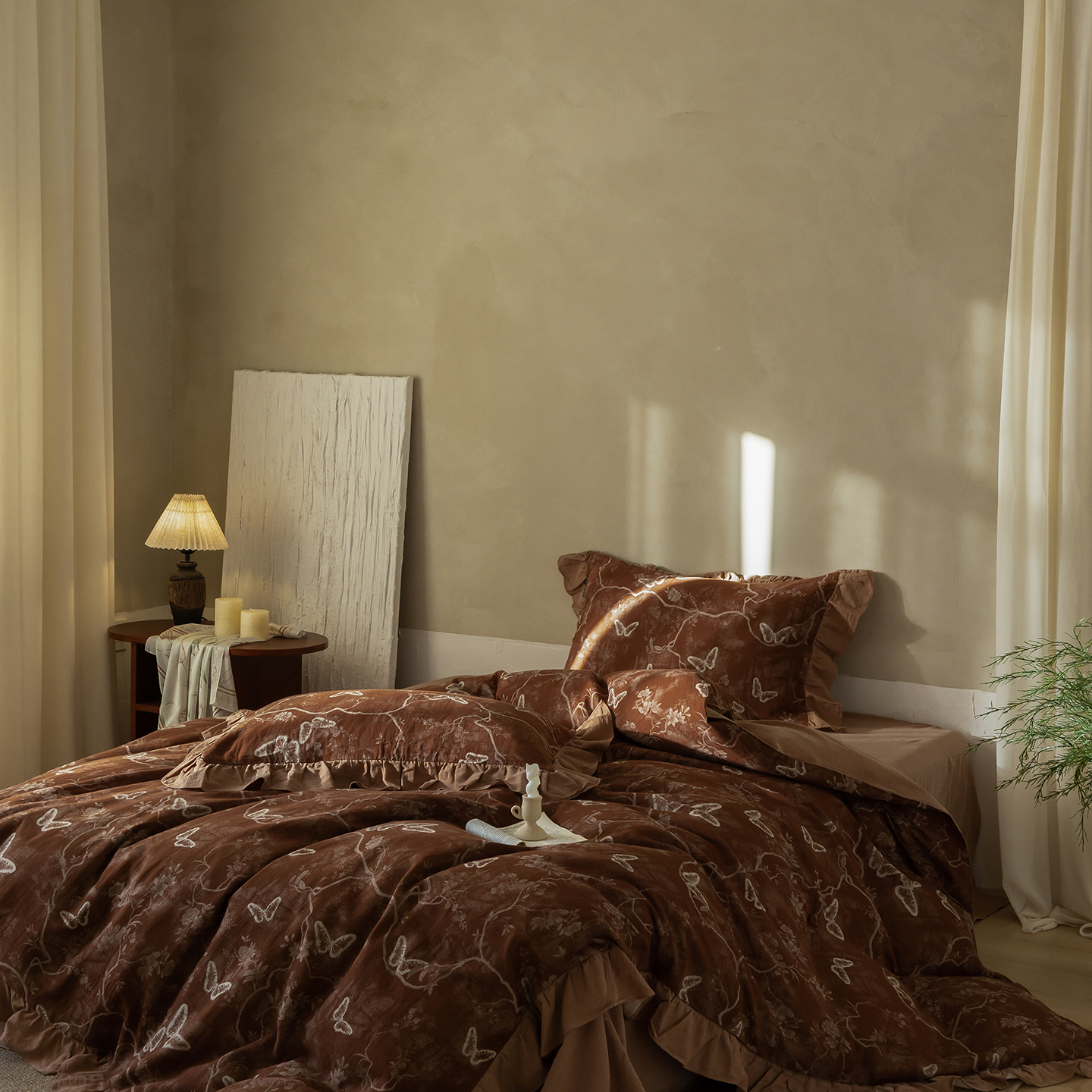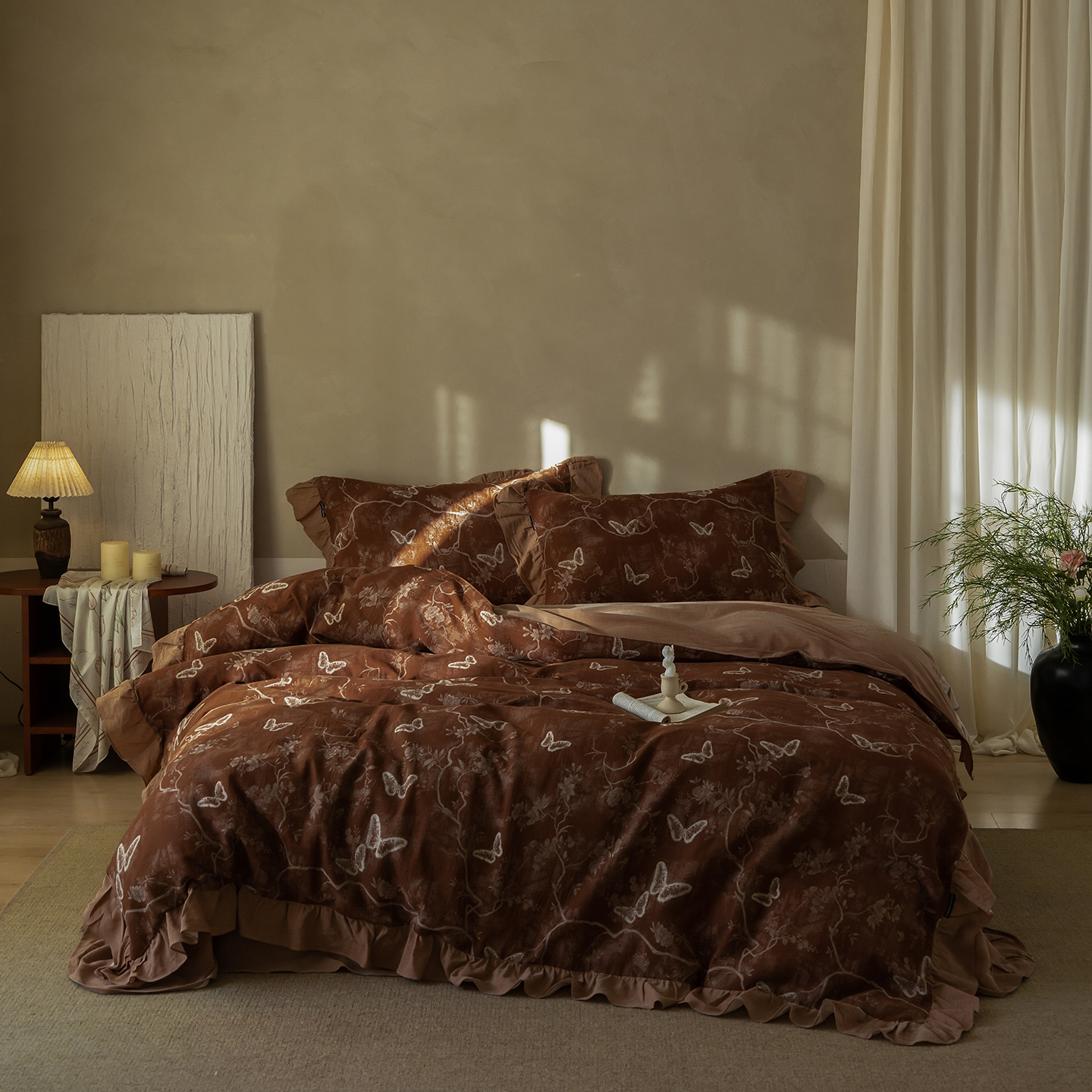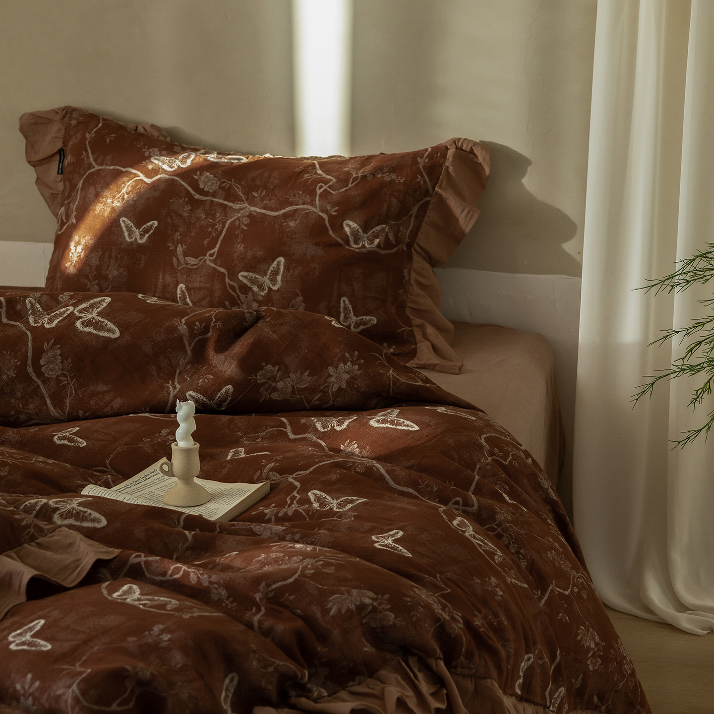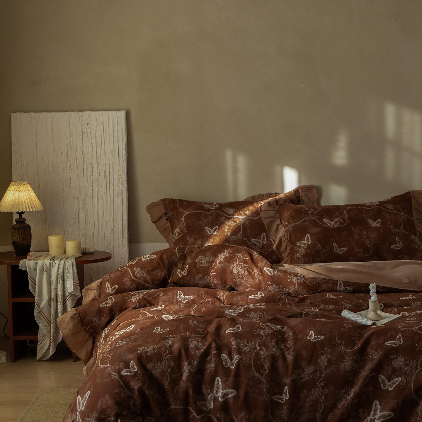 (总)爱丽丝 2026新款色织提花棉麻四件套系列,蝶影花汀,栖云锦团,浅雾枝雪,浅絮花颜,素枝花曳,素织竹影,烟枝花缕,竹影栖蝶