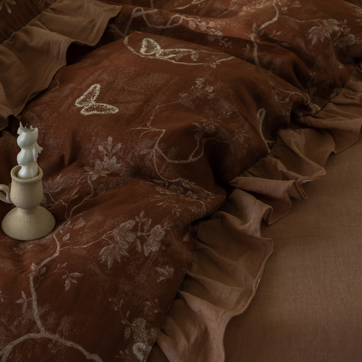 (总)爱丽丝 2026新品色织提花棉麻四件套-木兮花边款,木兮花边款