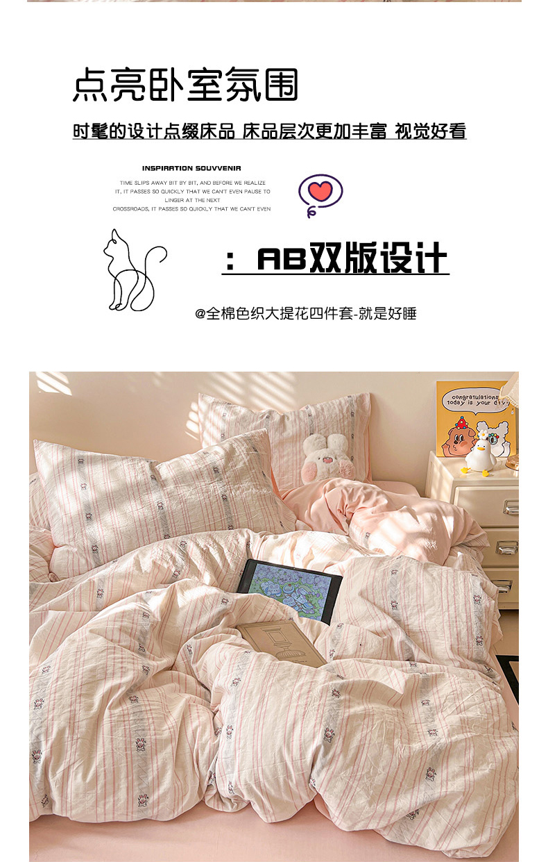 (总)爱丽丝 2026新款全棉剪花色织提花四件套,花颜-咖,花颜-蓝,可爱兔-粉,可爱兔-咖,小南瓜-灰,小南瓜-咖