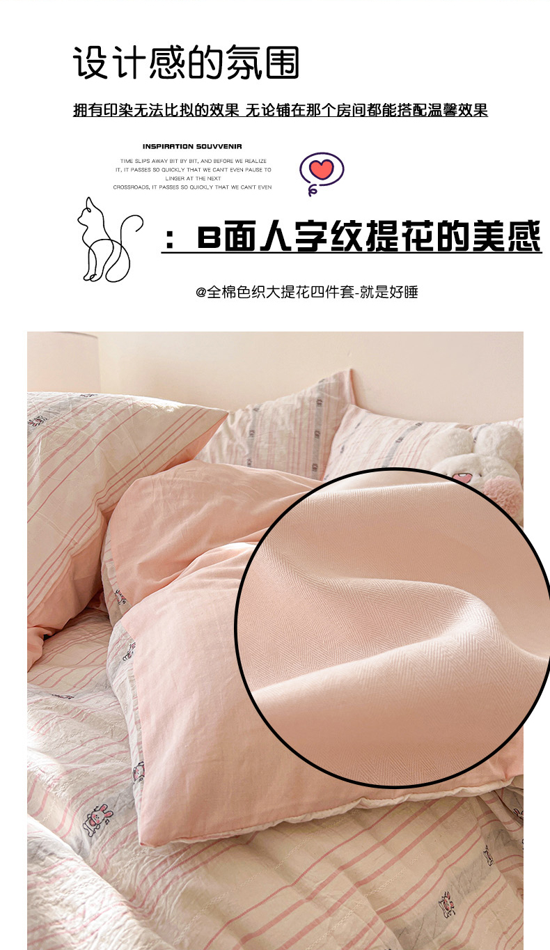 商品名称:爱丽丝 2026新款全棉剪花色织提花四件套 可爱兔-粉