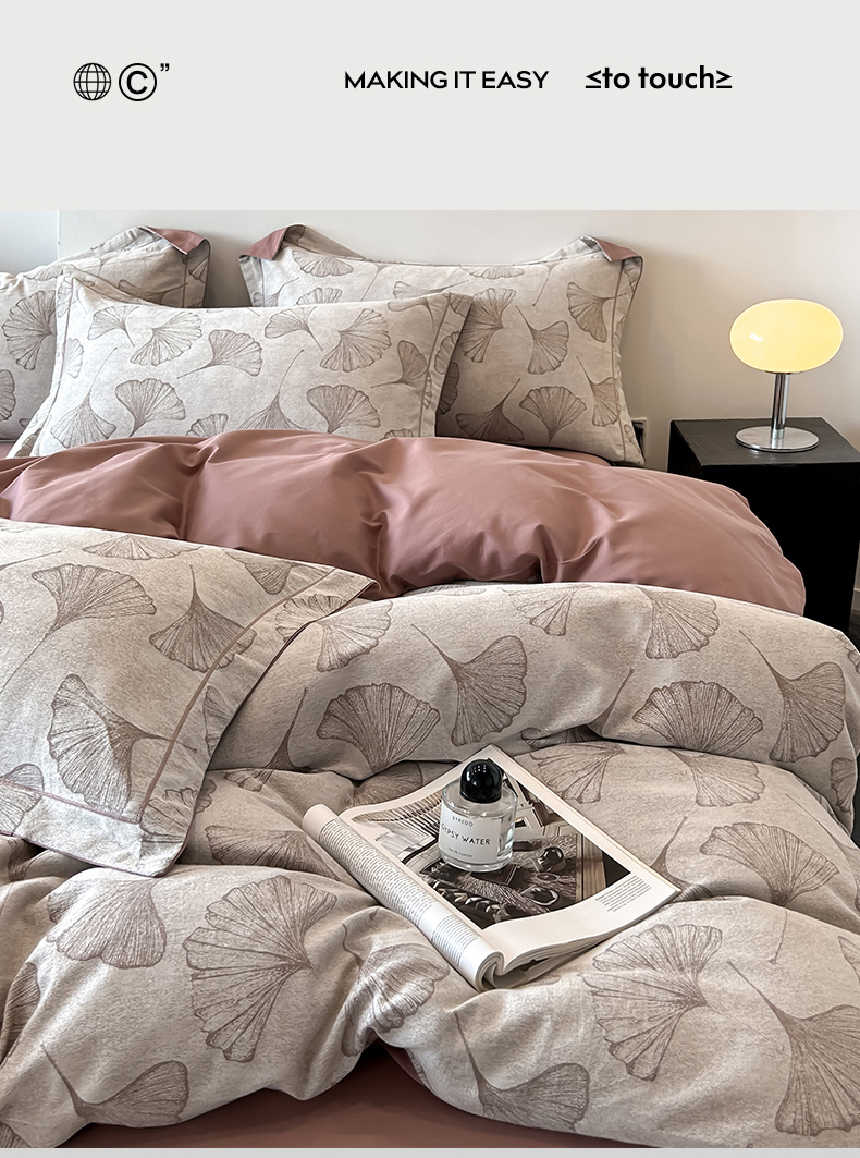 爱丽丝 2026新款全棉色织提花四件套 银杏叶-豆沙