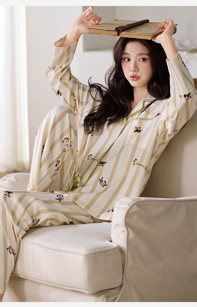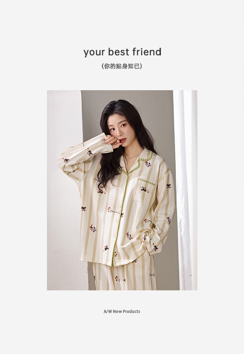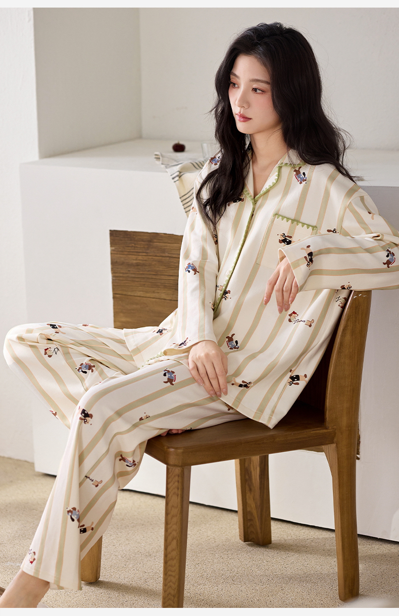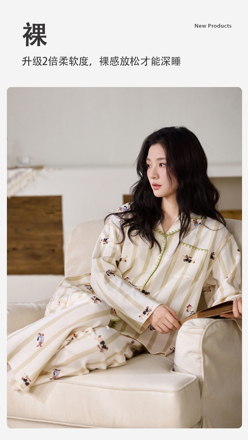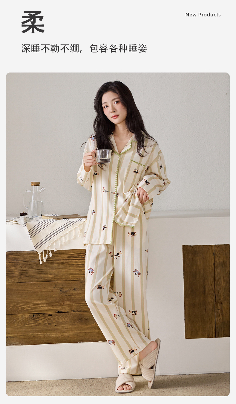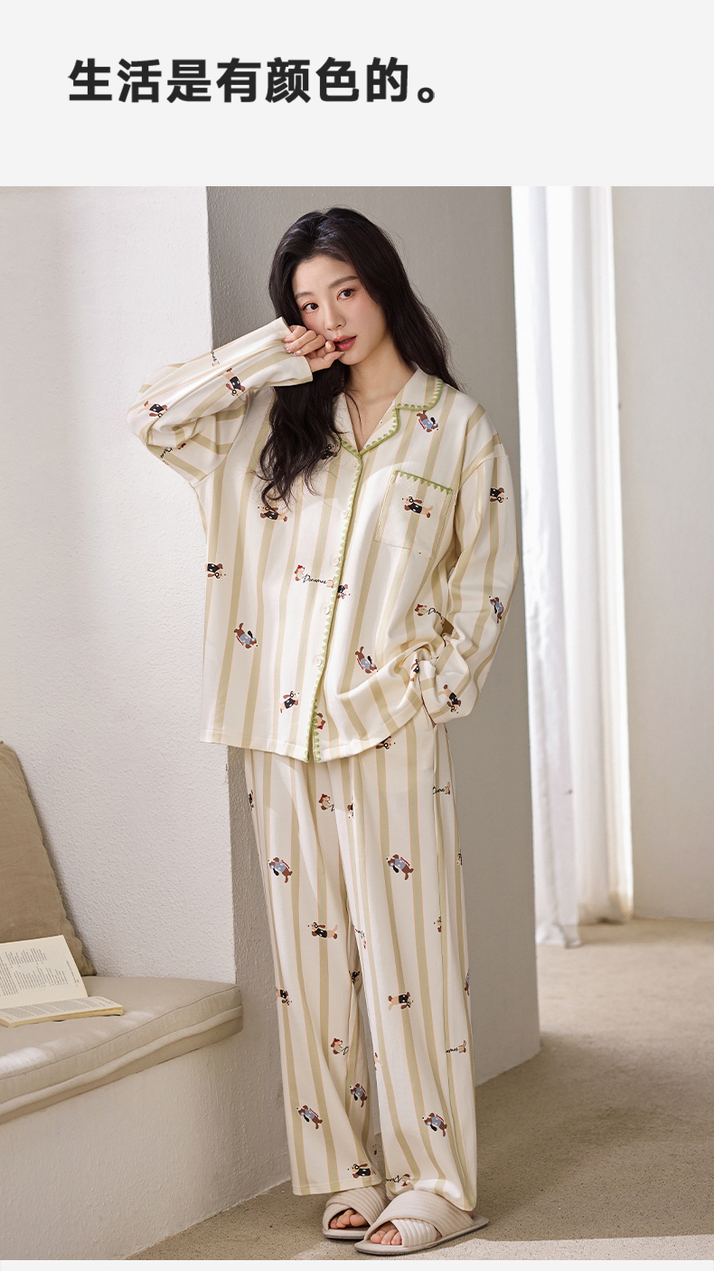 (总)洛兰沙家居馆 2026新款长袖睡衣女款纯棉春季印花开衫翻领家居服可外穿套装 第二批,45145,45146,45147