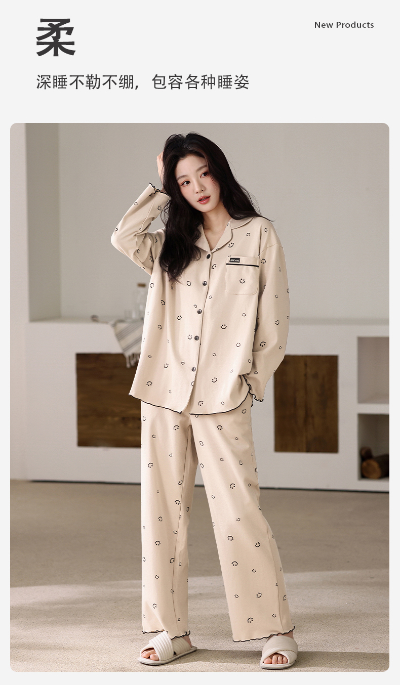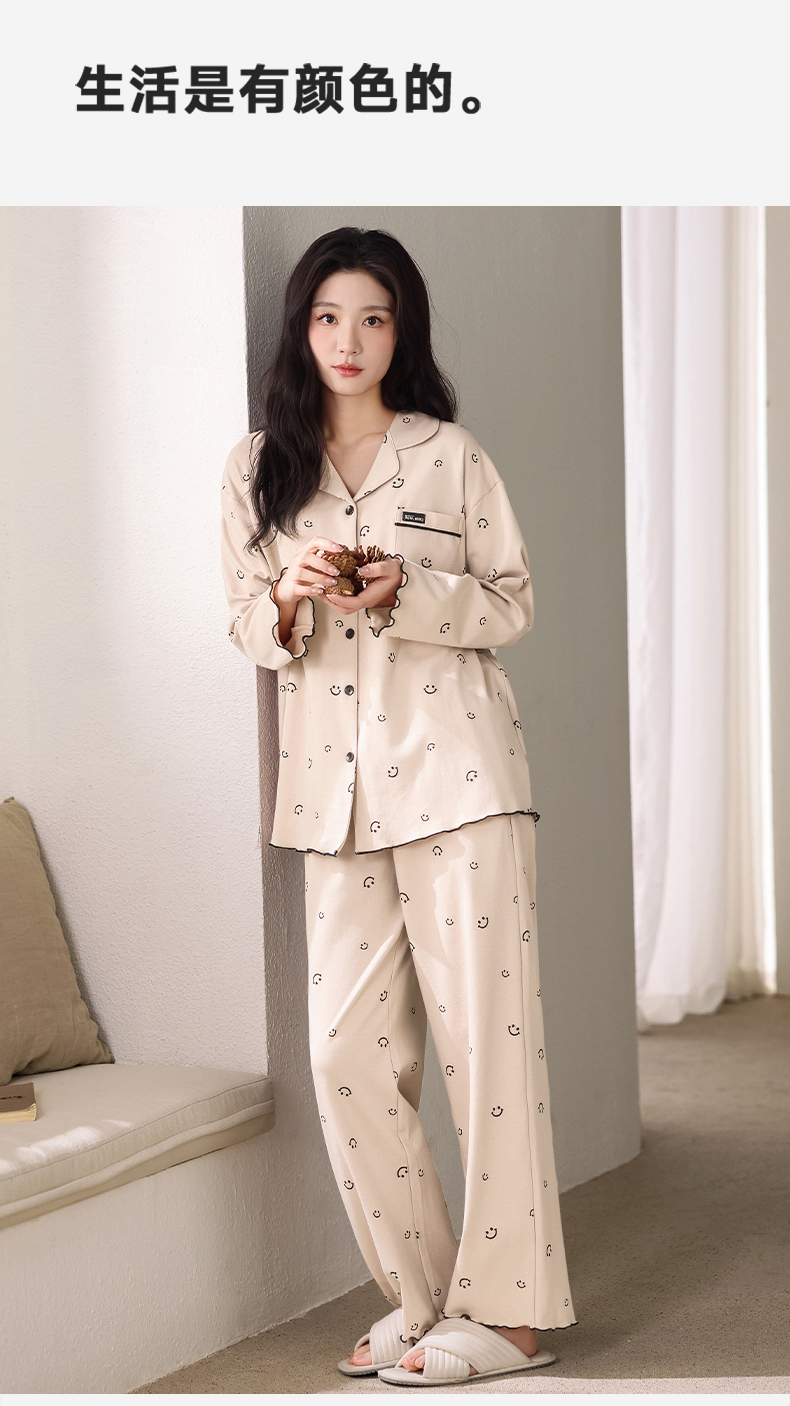 商品名称:(总)洛兰沙家居馆 2026新款长袖睡衣女款纯棉春季印花开衫翻领家居服可外穿套装 第二批