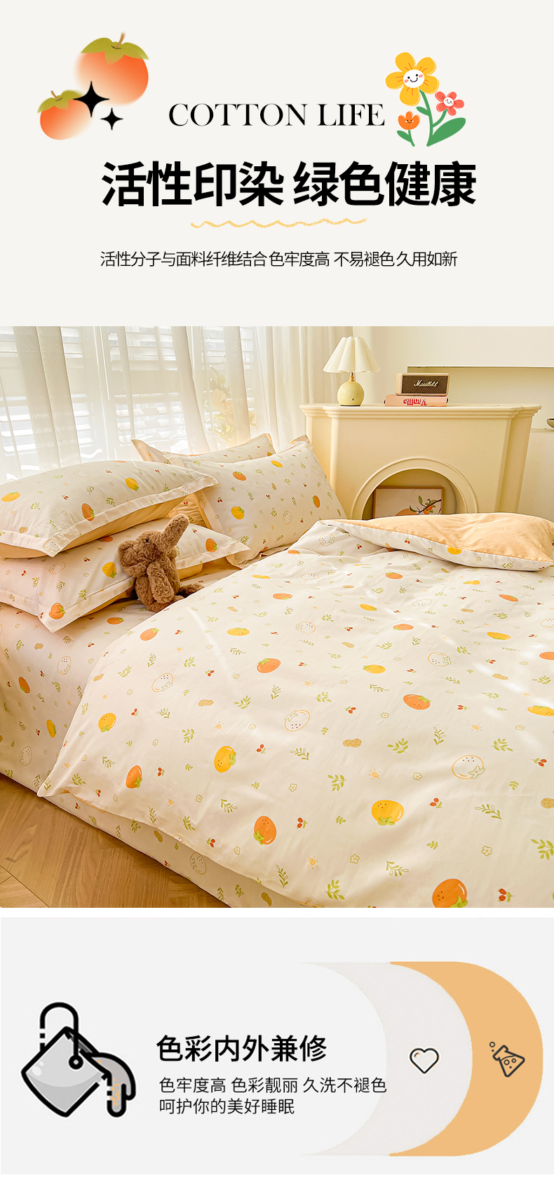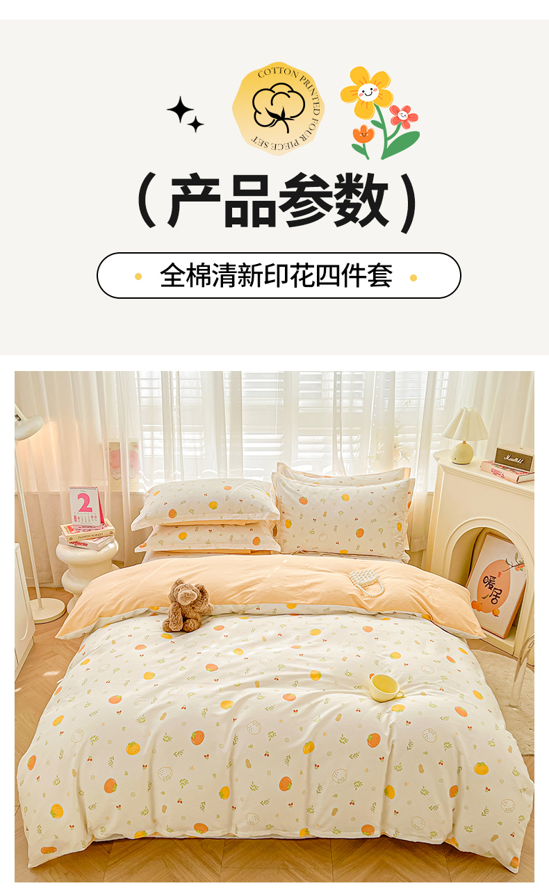 当前位置: 91家纺网 > 商品网购 > 床品套件 > 四件套 > 全棉普通四件套 > 珂博家纺 2026新款小碎花纯棉12868四件套全棉学生三件套场景二 好柿发生
