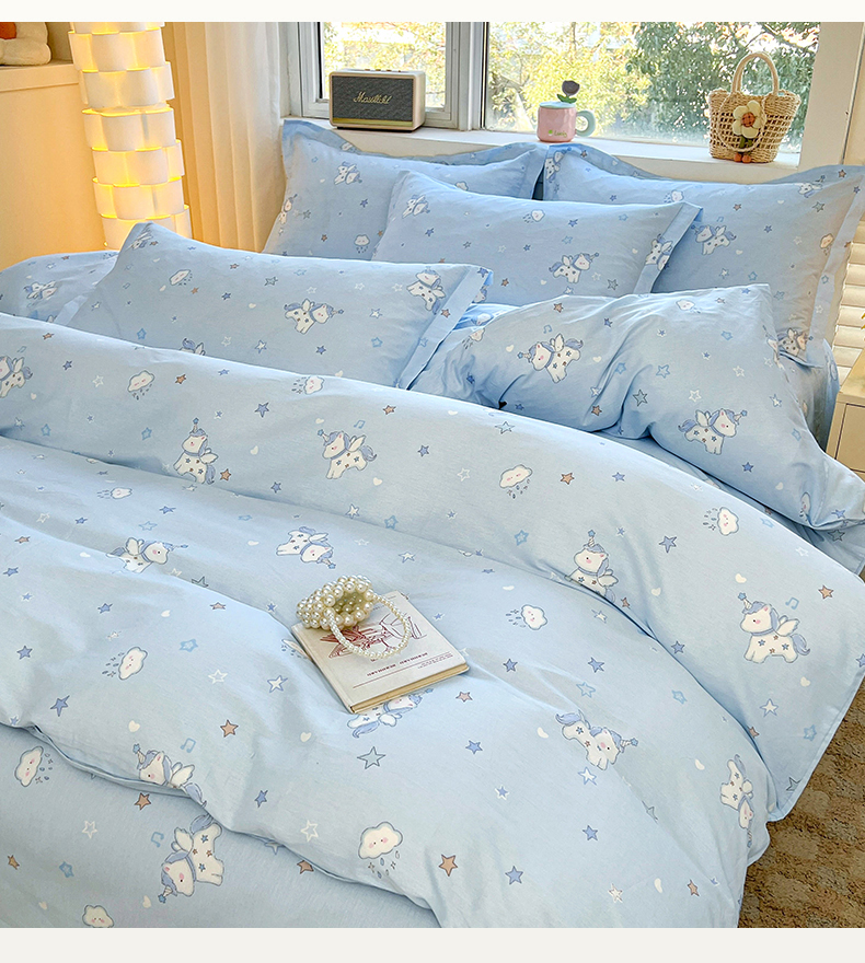 名优家纺 2026新款13070全棉印花单被套 星星独角兽