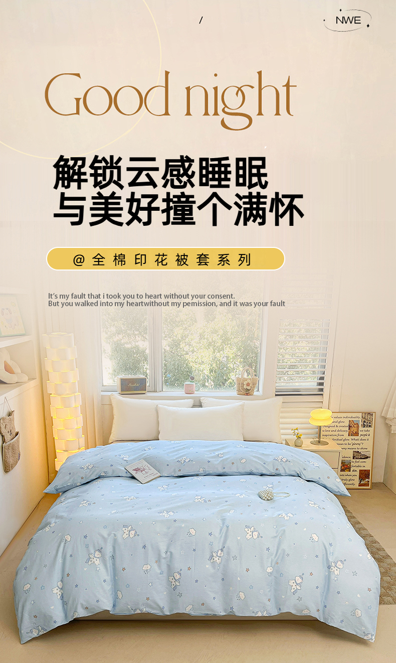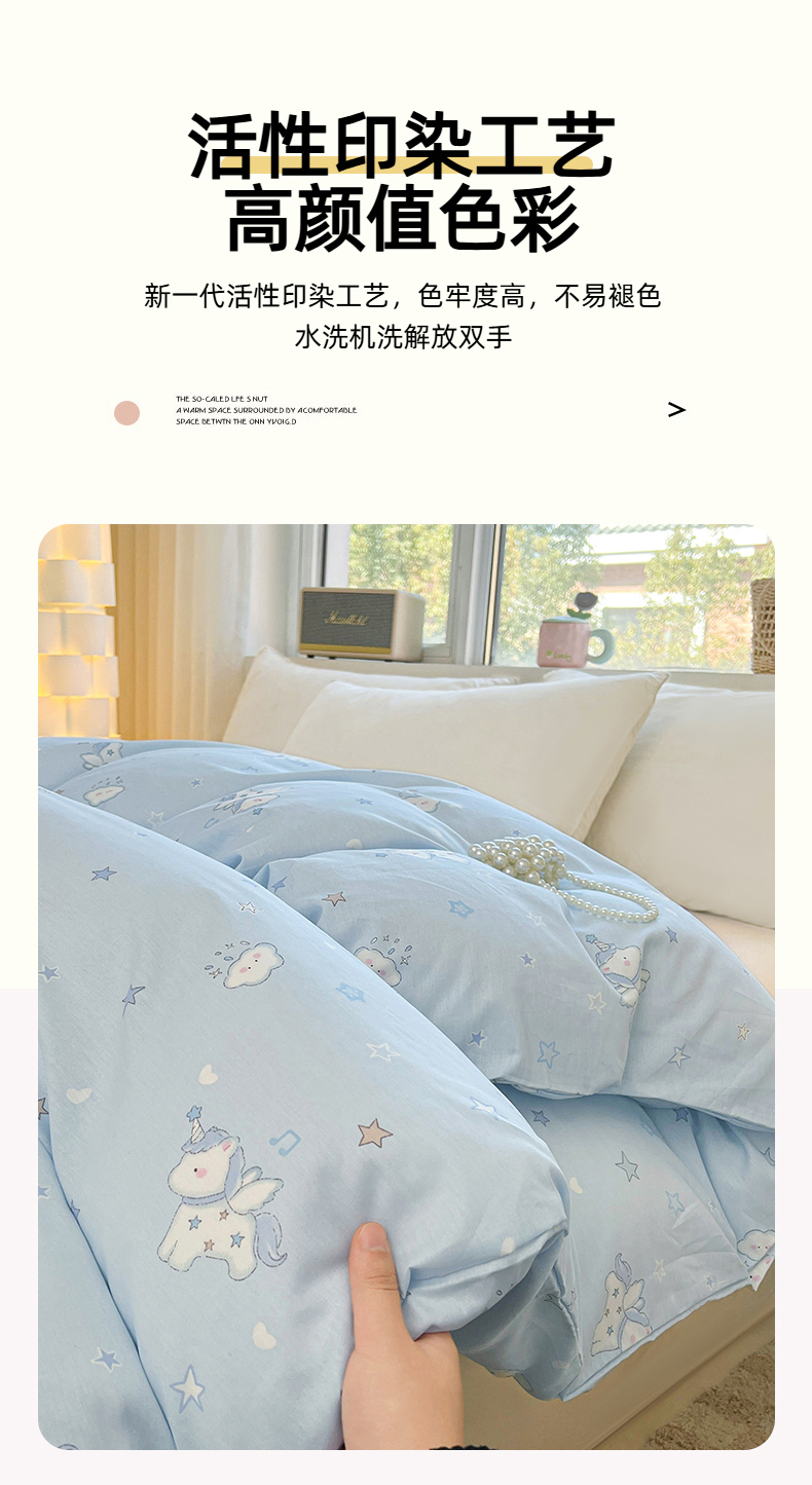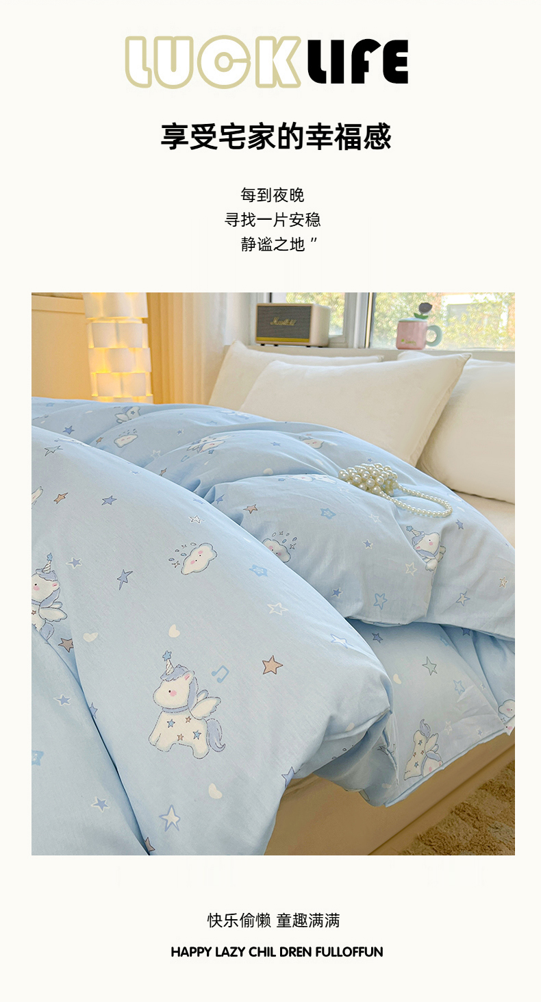 商品名称:名优家纺 2026新款13070全棉印花单被套 星星独角兽