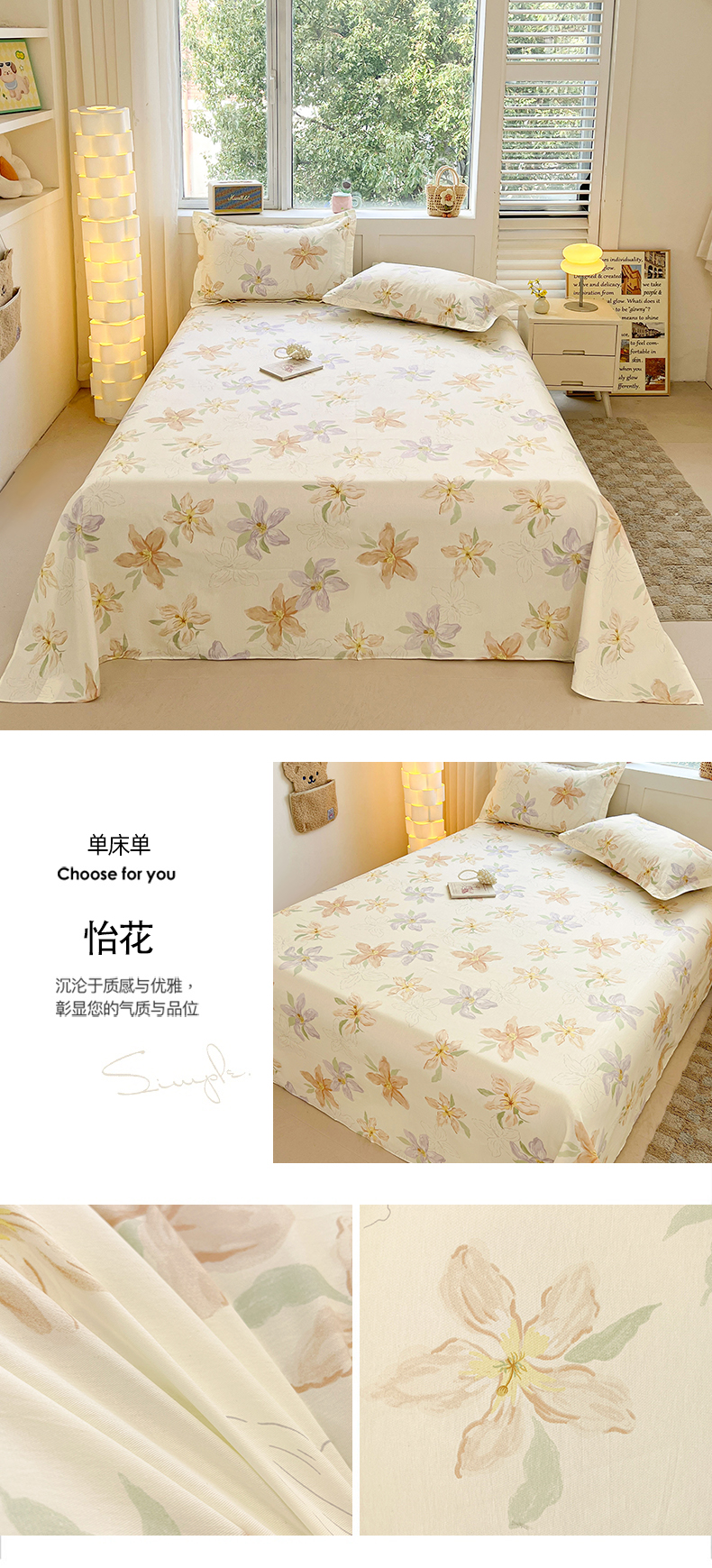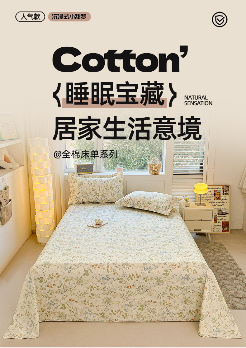 商品名称:名优家纺 2026新款13070全棉印花单床单 晚风私语