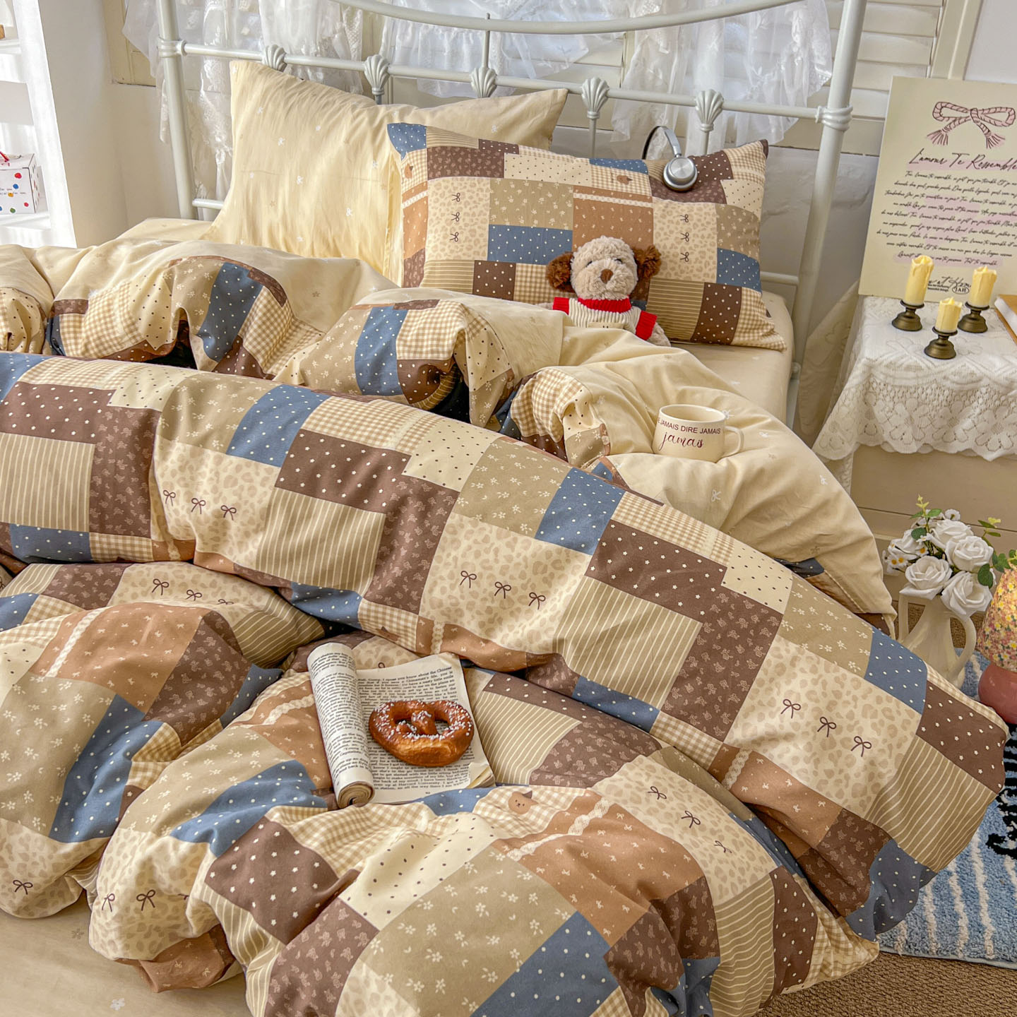 当前位置: 91家纺网 > 商品网购 > 床品套件 > 四件套 > 全棉普通四件套 > 桃喜 2026春夏新品全棉碎花三件套四件套-场景二 复古拼布碎花(全棉)