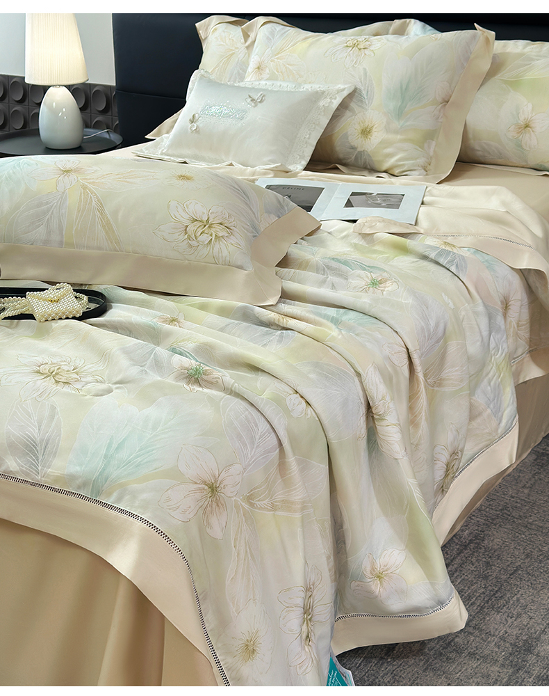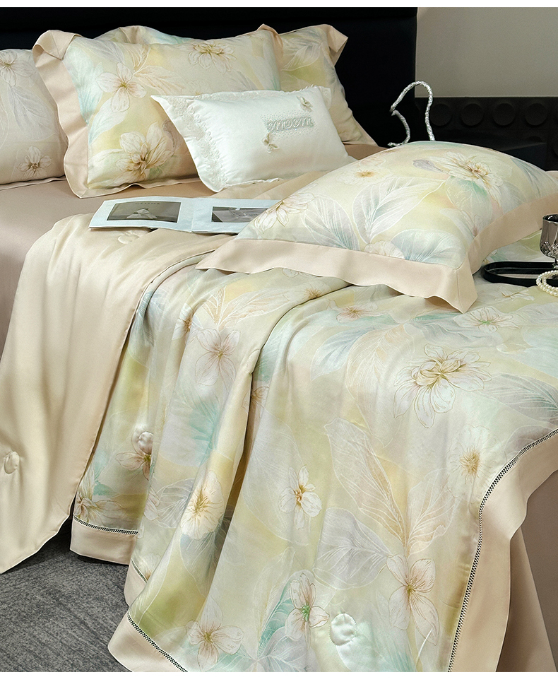 朵希曼 2026新款50天丝镂空夏被四件套系列(控价:夏被四件套券后不低于299元)(小号控价不低于149 标准单夏被控价169,加大单夏被控价189) 花溪-浅米黄