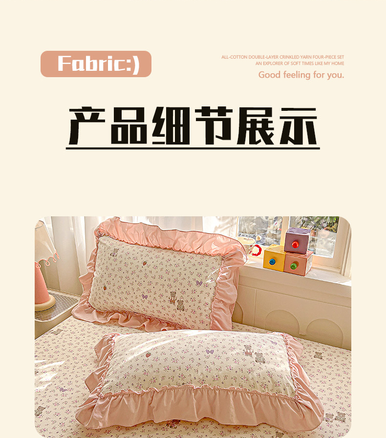 (总)富米莱(原臻工厂) 2026新款韩系古法韩国水洗棉云棉大布袋法式浪漫大花边床盖夏凉被床盖四件套,爆了樱桃,点点黑,点点红,浮世绘,花满满,浪漫玫瑰,马上有钱,玛奇朵,猫猫粉,猫猫蓝,莫松染,暮山紫,奶油兔,砚余墨,知春绿,紫兔兔