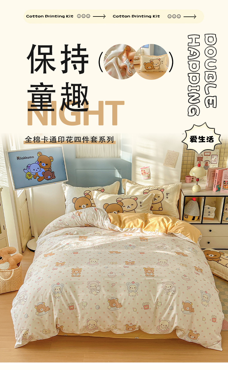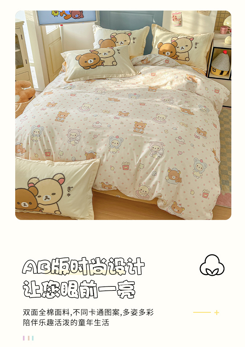 当前位置: 91家纺网 > 商品网购 > 床品套件 > 四件套 > 全棉普通四件套 > 浩诚 2026新款全棉卡通四件套第4批(陆续更新) 快乐小熊