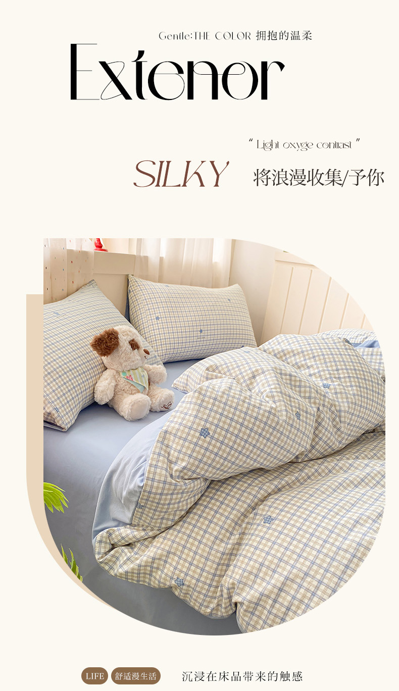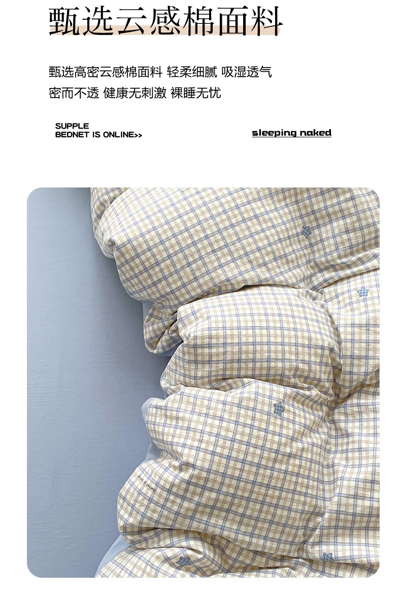 当前位置: 91家纺网 > 商品网购 > 床品套件 > 四件套 > 水洗棉四件套 > 卢赛尔 2026新款古法水洗仿棉云感棉学生三件套四件套 星星格