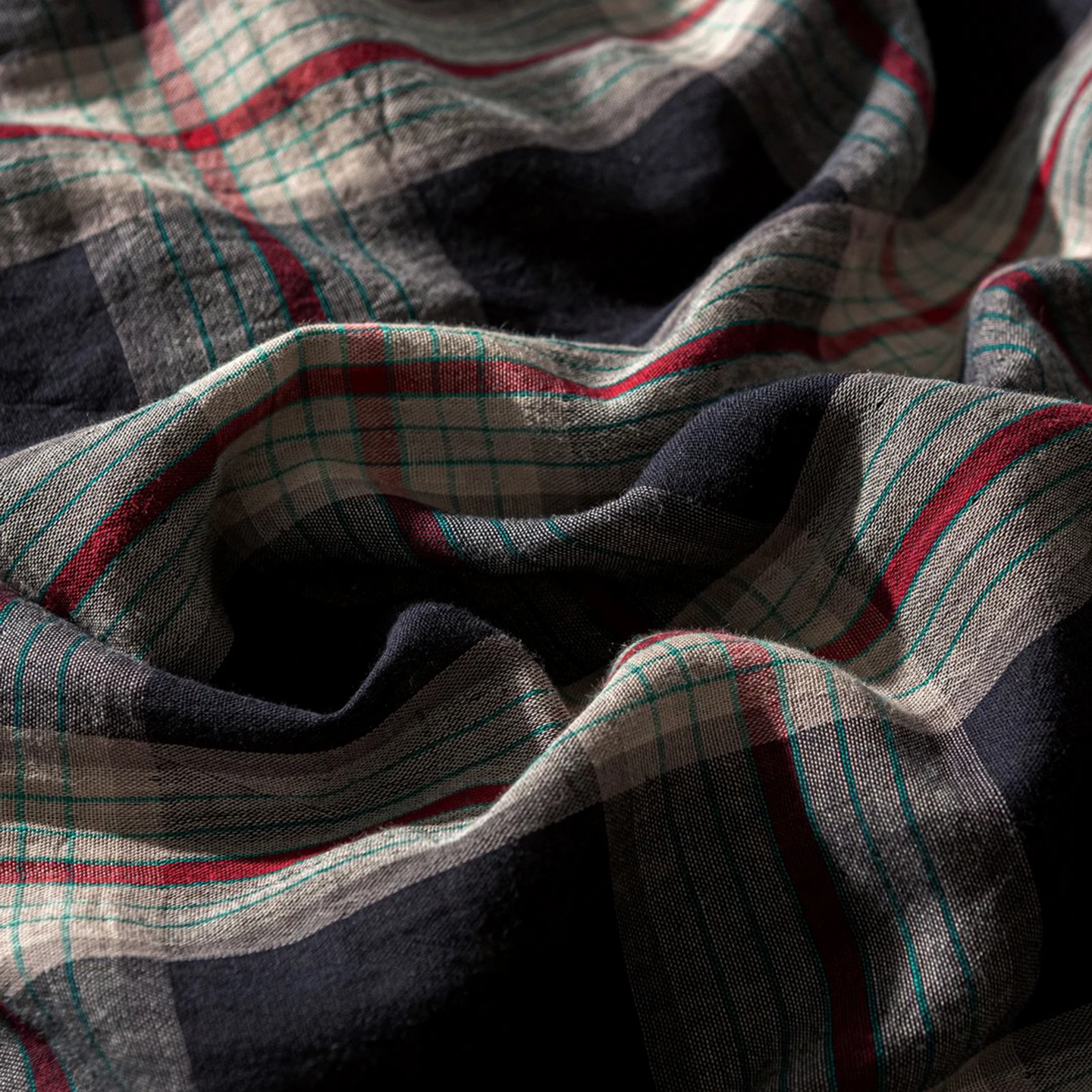 双层纱家居 2025新款格缦全棉纯棉色织双层纱系列四件套 墨染朱华