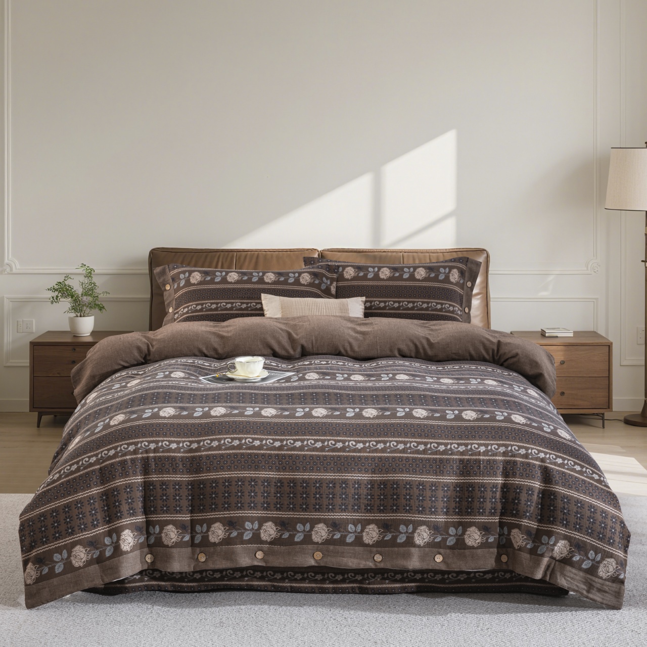 (总)双层纱家居 2026新款浪琴暮歌全棉纯棉色织提花双层纱四件套