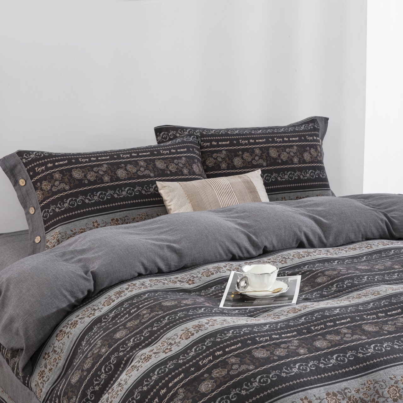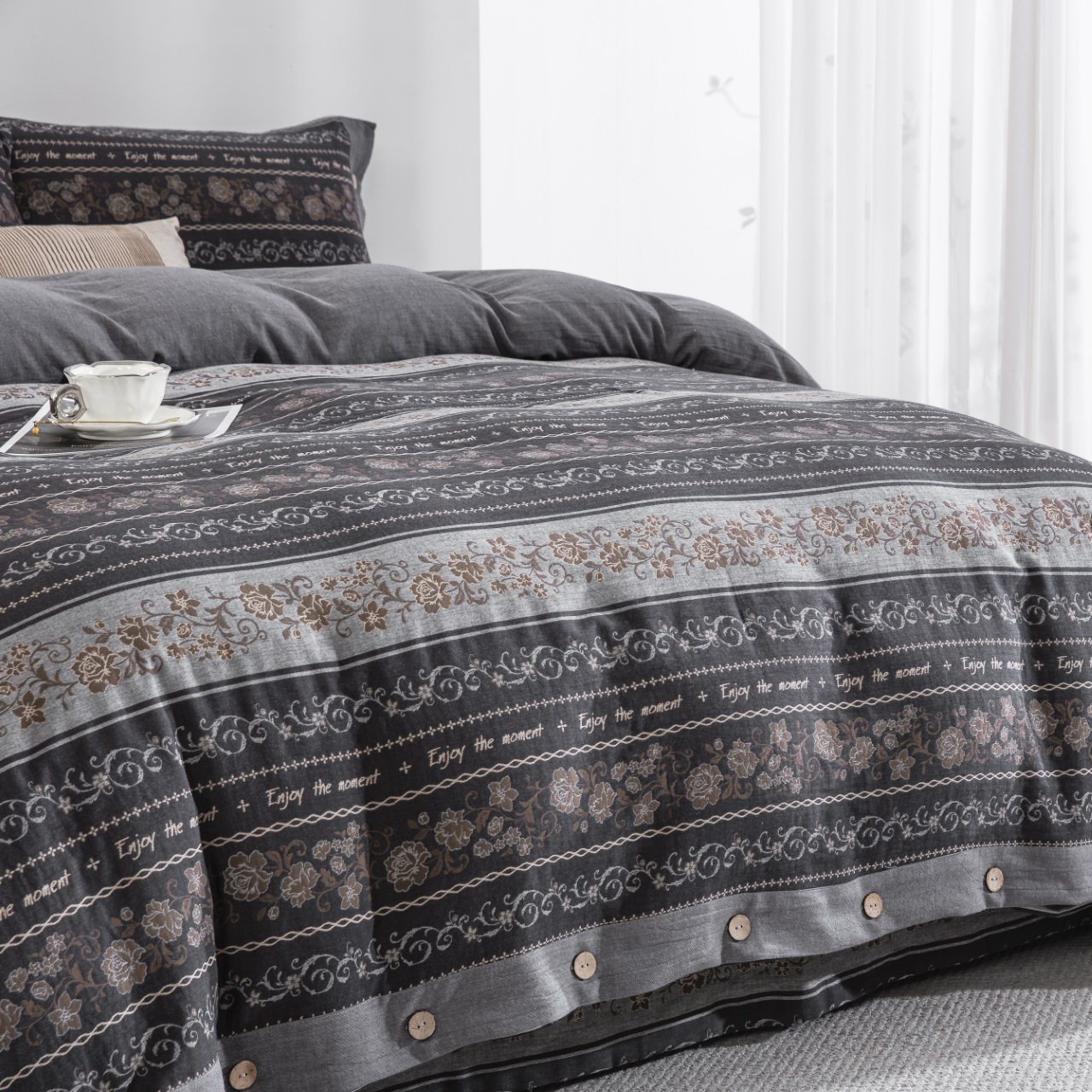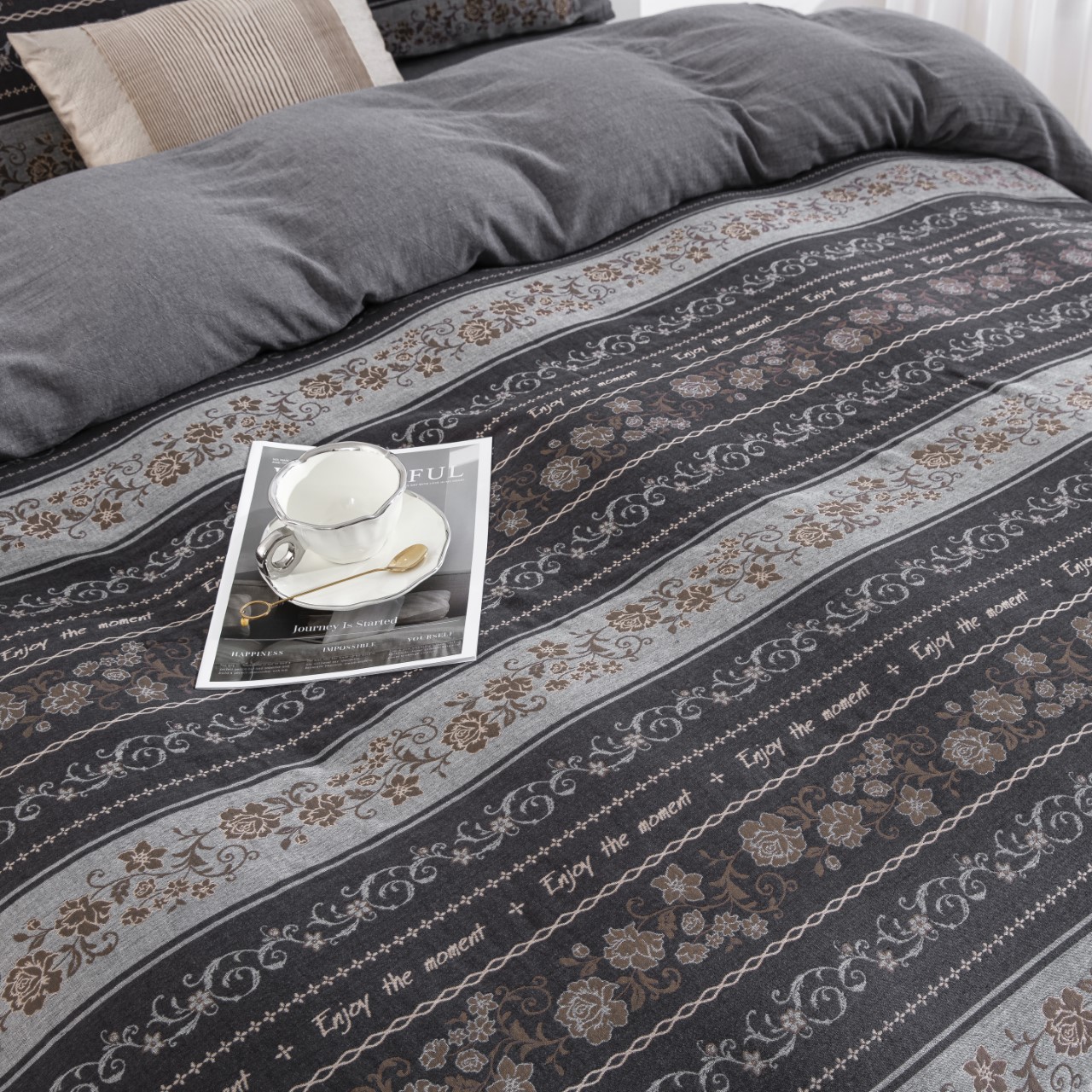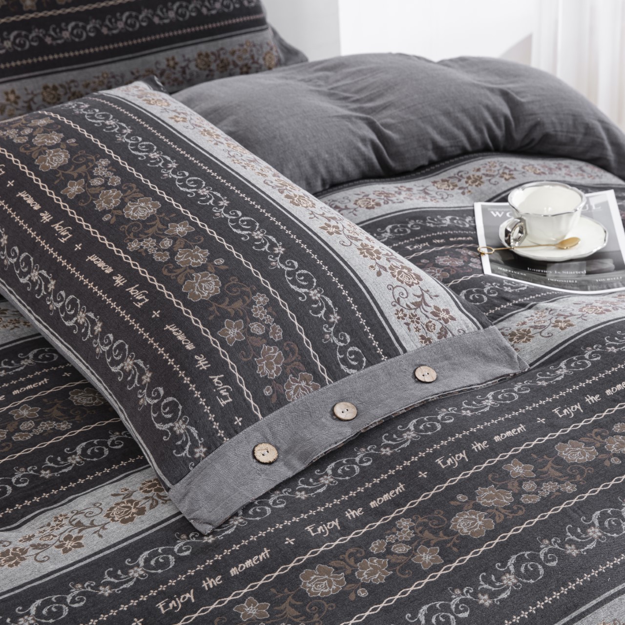 (总)双层纱家居 2026新款冬日繁花灰全棉纯棉色织提花双层纱四件套