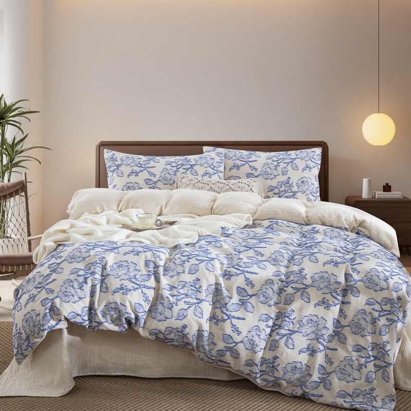 (总)双层纱家居 2024新款双层纱四件套,百福蓝,梦百合,水墨米黄,水墨米兰,西雅图蓝