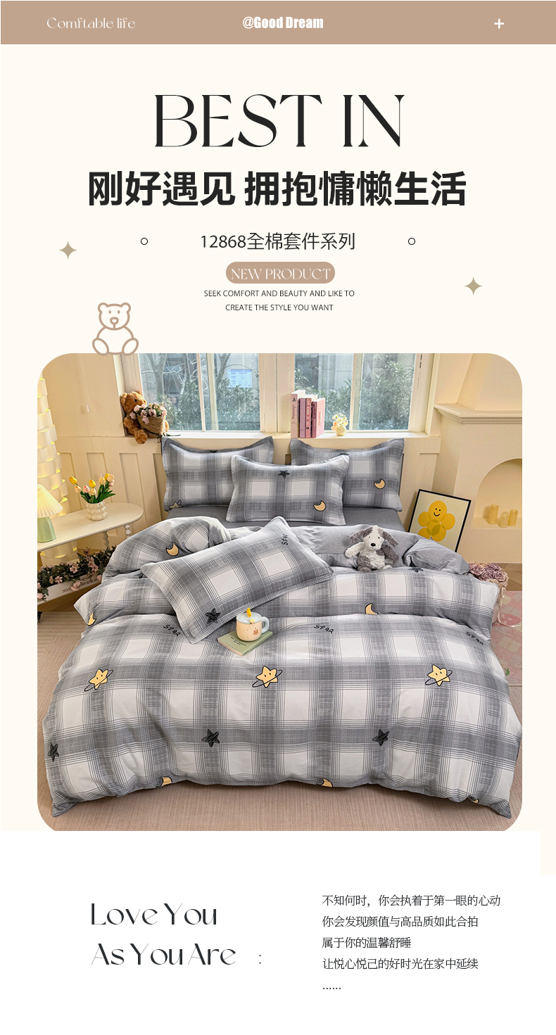 当前位置: 91家纺网 > 商品网购 > 床品套件 > 四件套 > 全棉普通四件套 > 简冠家纺 2026新款12868印花全棉四件套纯棉四件套 星空印记