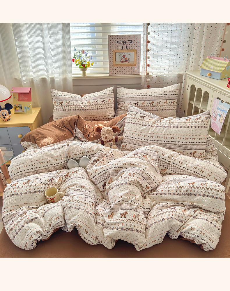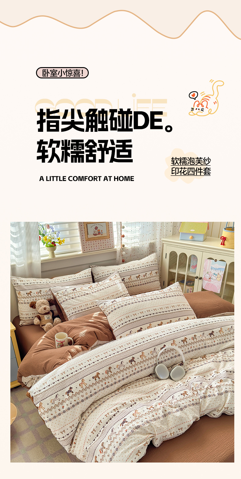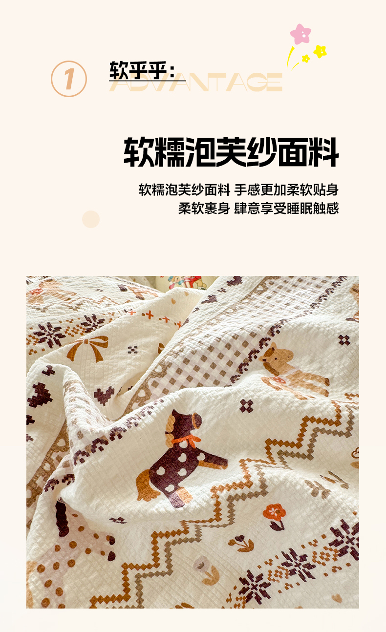 当前位置: 91家纺网 > 商品网购 > 床品套件 > 四件套 > 双层纱四件套 > 优承佳生活馆 2026新款卡通小清新风格高克重超柔软糯泡芙双层纱面料三件套四件套单被套系列 (提供买家秀) 千禧马