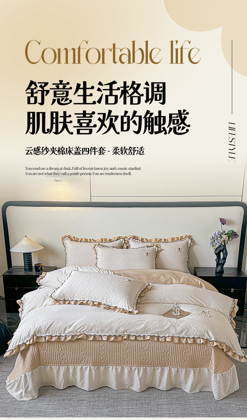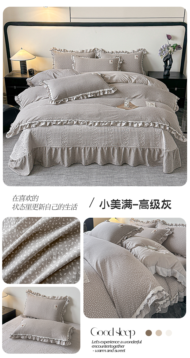 (总)梓之赫 2026新款云感纱夹棉床盖四件套-小美满,小美满-高级灰,小美满-可可棕,小美满-迷雾灰,小美满-蜜合紫,小美满-摩卡棕,小美满-奶茶色,小美满-奶油粉