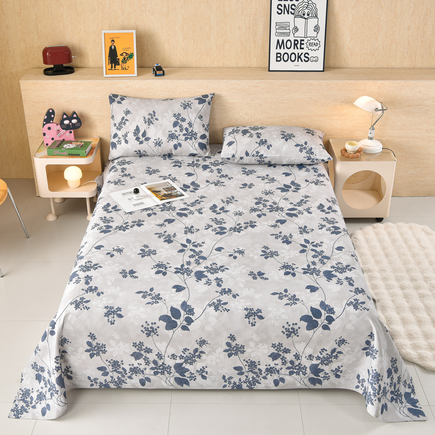 (总)德比尔斯 2026新款原棉老粗布凉席印花床单三件套,波西米亚,草莓甜心,黛紫,迭迭绿,动物乐园,粉格子,粉色猫,草莓,蓝莲花,菱格,萌熊,慕夏,如意棕,童年游戏,西野暮色,相遇-蓝,小狮子,紫嫣