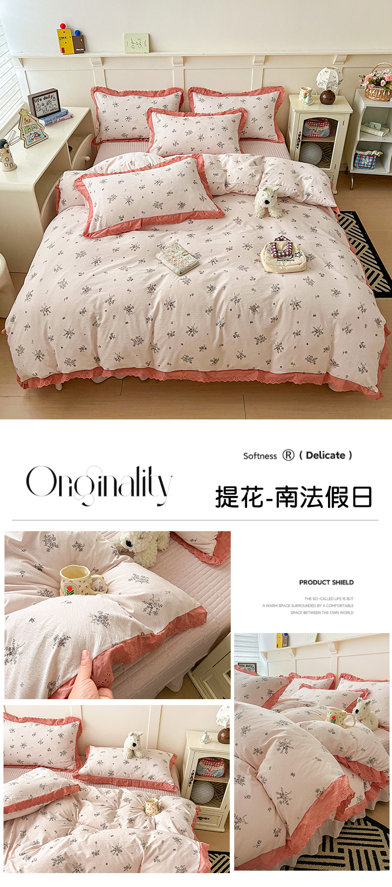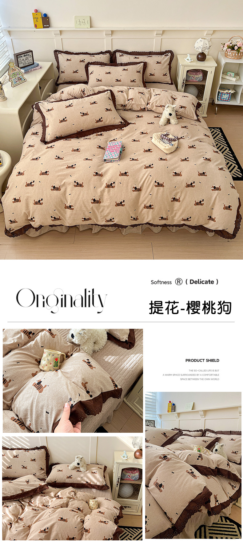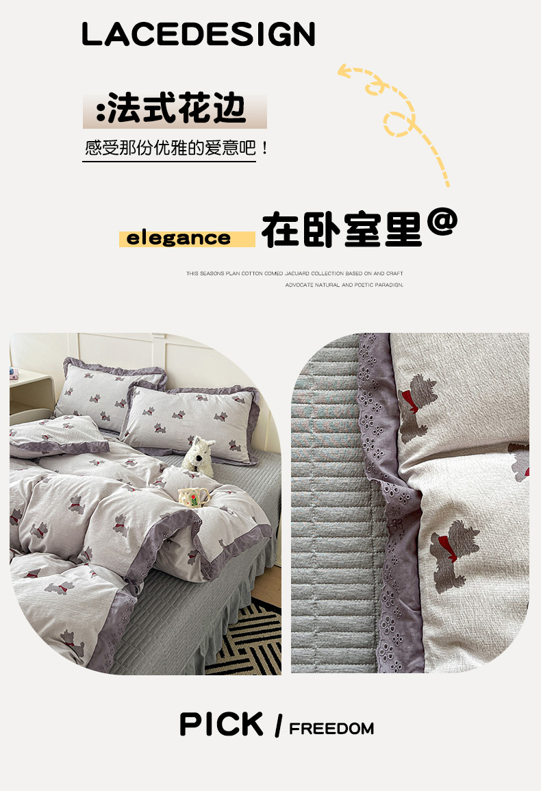 当前位置: 91家纺网 > 商品网购 > 床品套件 > 四件套 > 全棉普通四件套 > 富米莱(原臻工厂) 2026新款高克重爆款法式全棉纯棉花边四季款加厚色织提花床盖床裙四件套 提花-樱桃狗