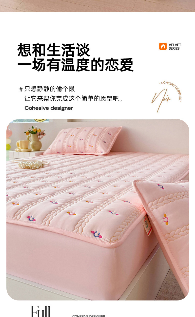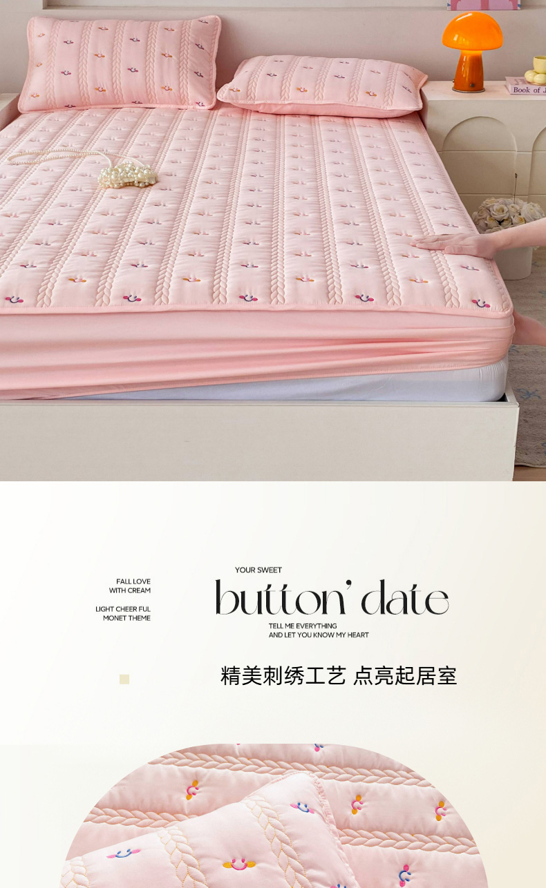 尊康家纺(原磊科) 2026新款奶昔棉抗菌夹棉床笠-昭岚系列 昭岚-粉玉