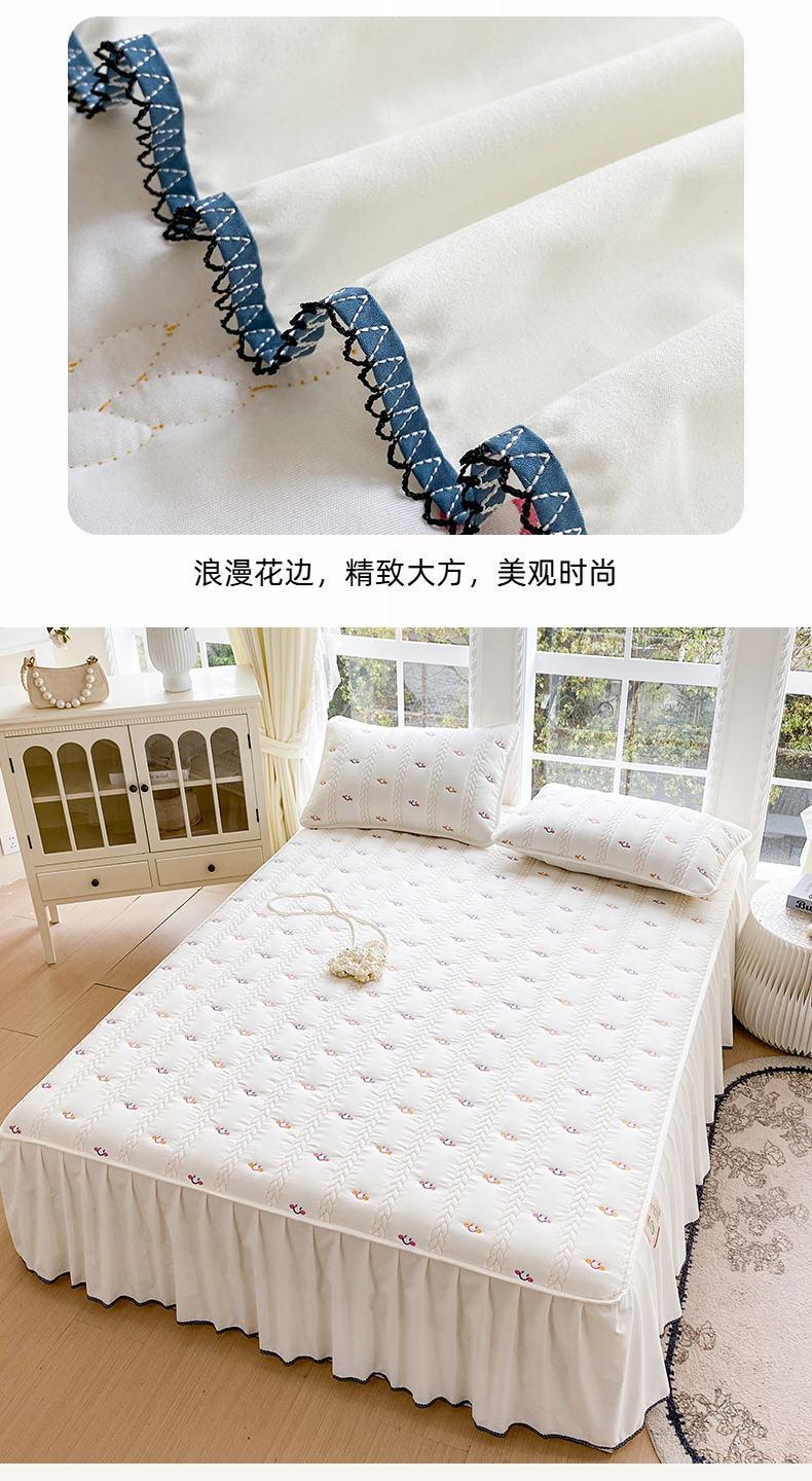 (总)尊康家纺(原磊科) 2026新款奶昔棉抗菌夹棉床裙款床笠-花语系列,花语-薄荷绿,花语-绅士灰,花语-天空蓝,花语-香槟,花语-粉玉,花语-米白